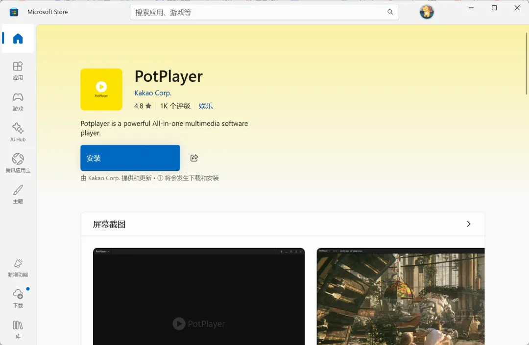 下载地址(认准官网,避免第三方捆绑):👉 https://potplayer.daum.net(需科学上网)或直接在微软的官方应用商店直接下载