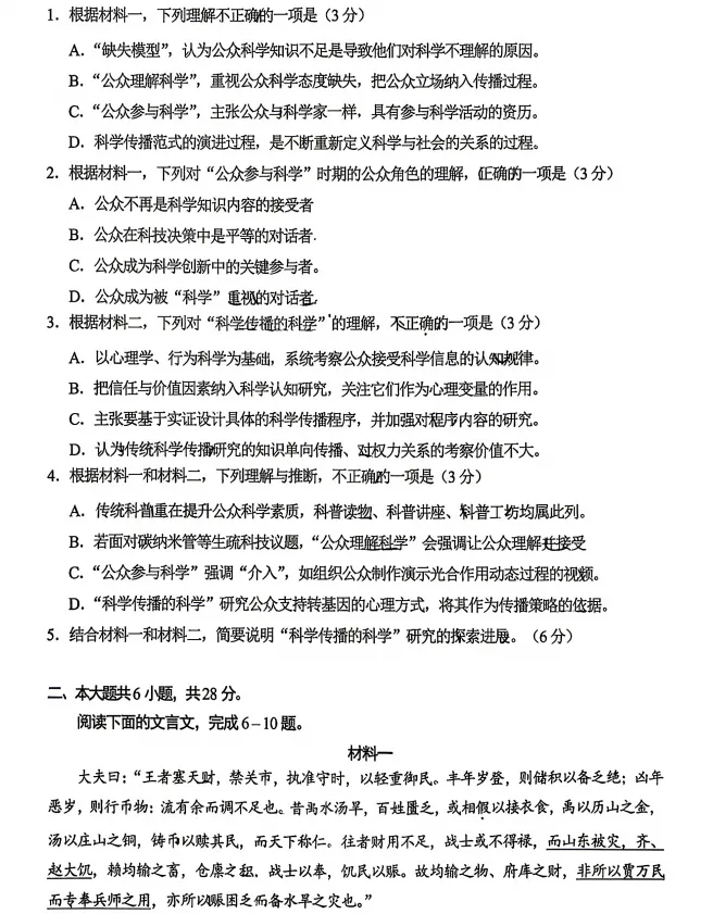 2026年北京石景山高三一模语文,PDF版!