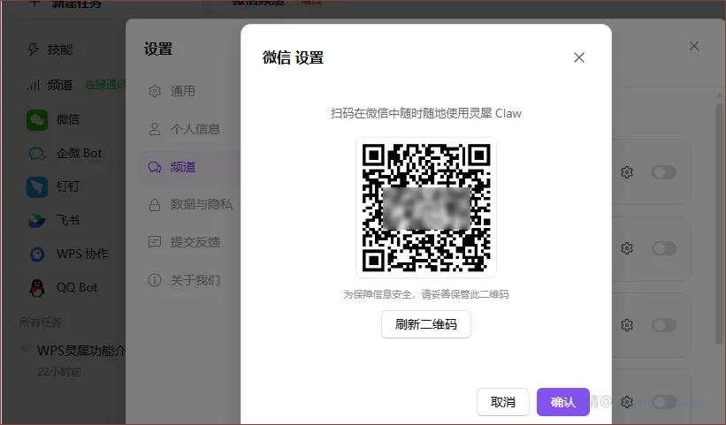 成功加载,你就可以看到下面的主界面了,和我们前面分享QClaw差不多吧!相关的频道和用法下面再细说!