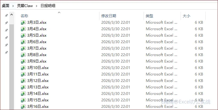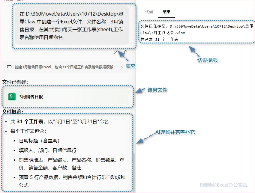 在 D:\360MoveData\Users\10712\Desktop\灵犀Claw 中创建一个Excel文件,文件名称:3月销售日报,在其中添加每天一张工作表(sheet),工作表名称使用日期命名