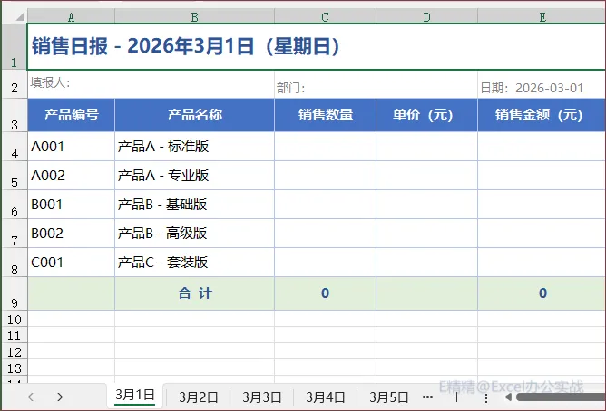 其实这里表述的不够清晰,但是还是给我生成了!并且根据自己的理解为每一张工作表中的内容做了适当的完善,根据其中提到的“销售日报”推测!