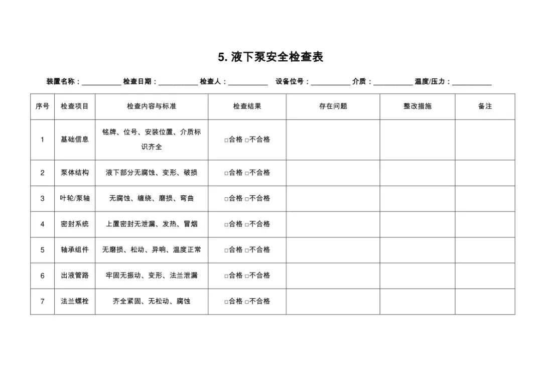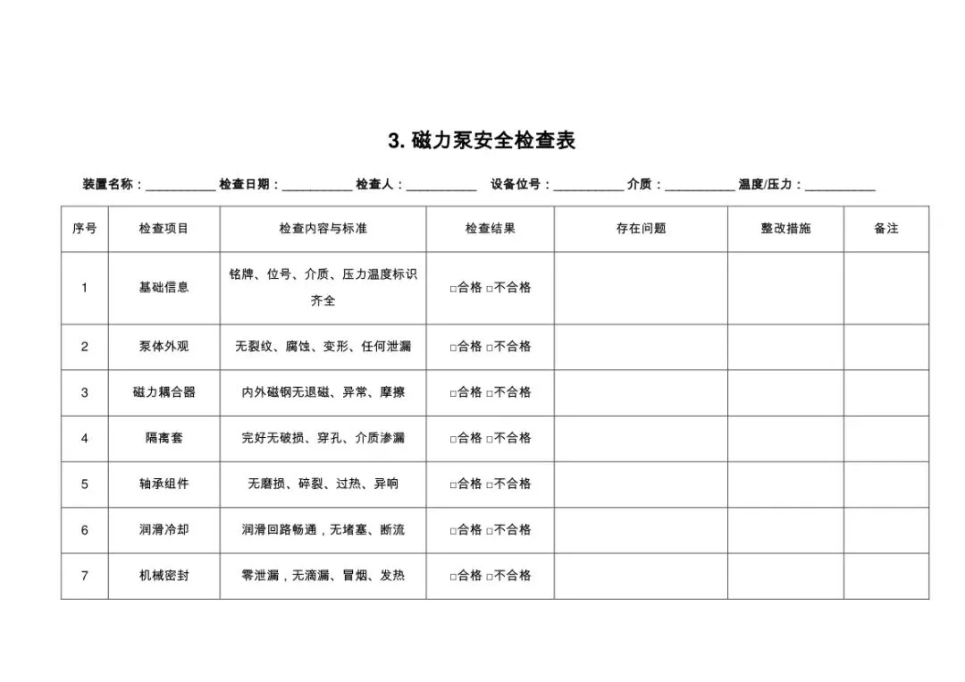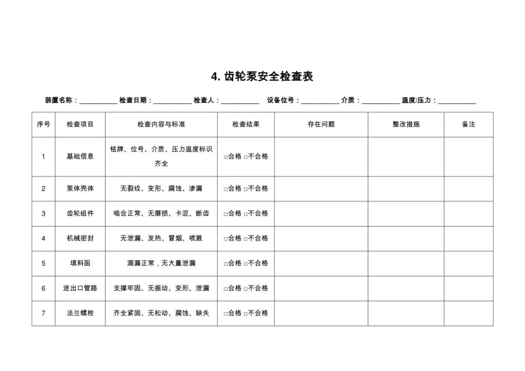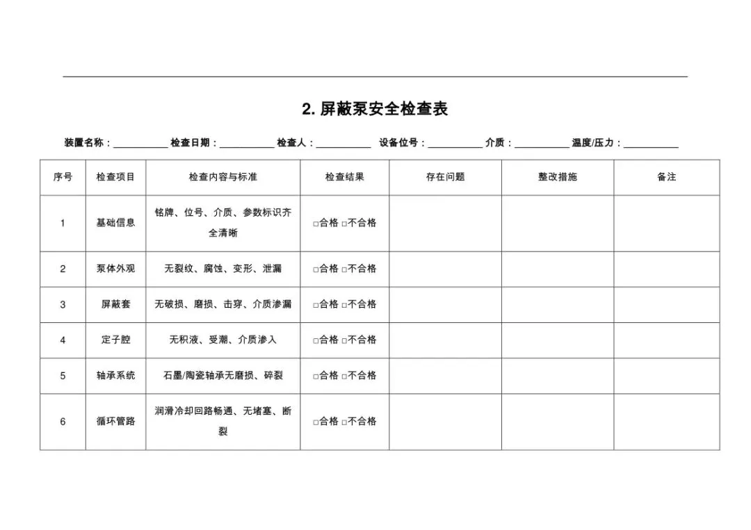 6类泵安全检查表!这份手册请收好(附可下载表)