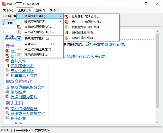 一款用于处理 PDF 文件的工具集合,可以对文档进行编辑、拆分、合并、提取等操作,也支持查看和调整文档结构。