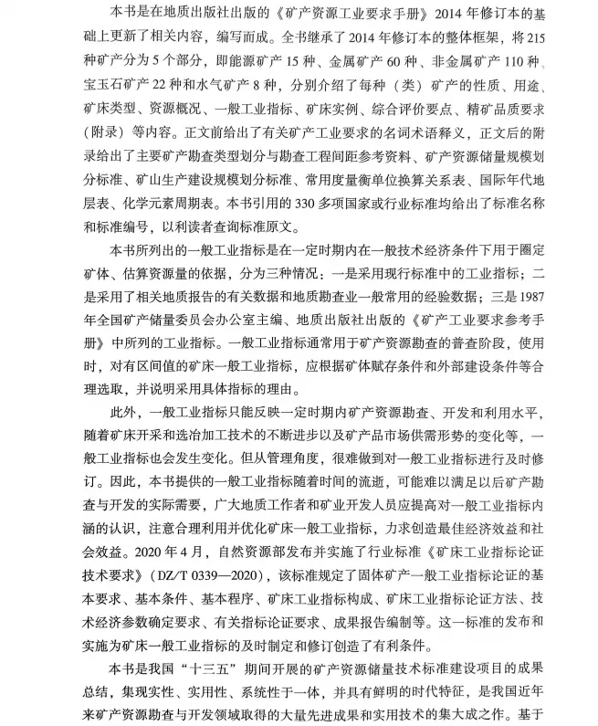 引用国家标准或行业标准330多项,介绍了560个典型矿床采用的工业指标实例。