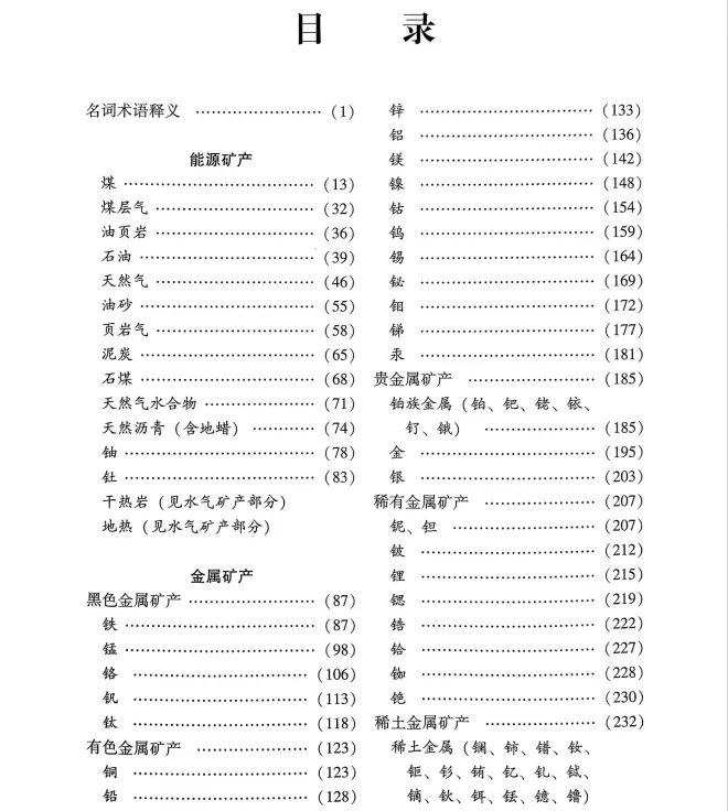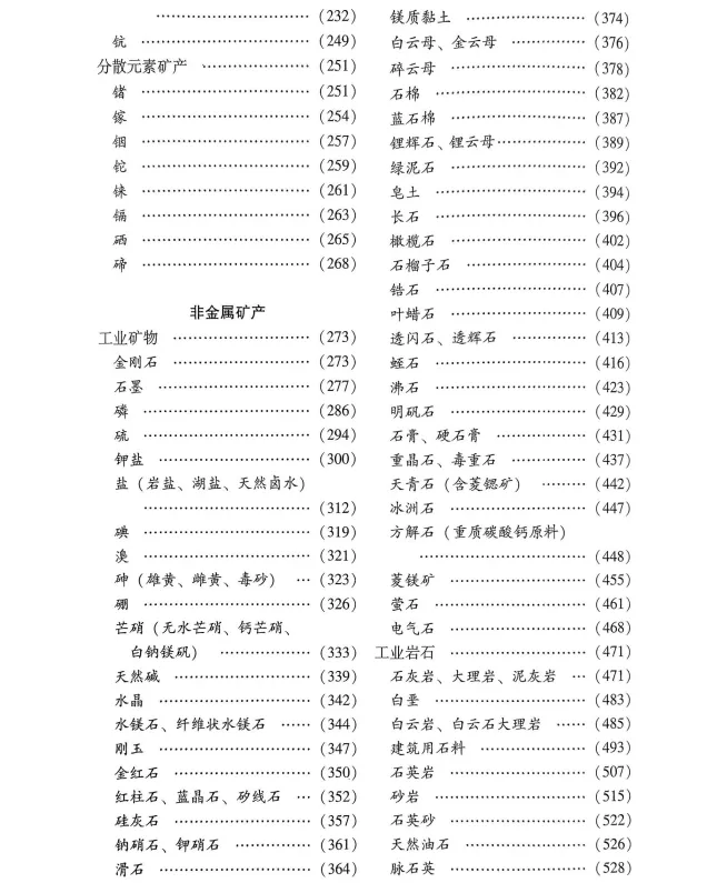 其中包括:能源矿产15种,金属矿产60种、非金属矿产110种、宝玉石矿产22种、水气矿产8种。
