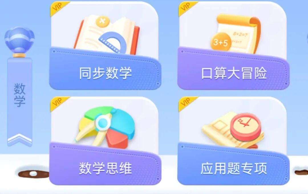 天天练的数学内容很丰富,包含四大版块:数学思维、校内同步、口算大冒险、应用题专项。