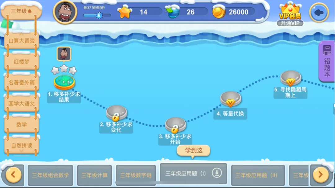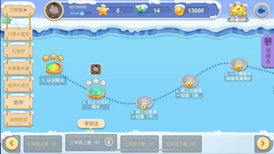 比如,天天练三年级上的课程包含:2节周长课,4节乘法课,2节认识时间课,3节小数点课等。