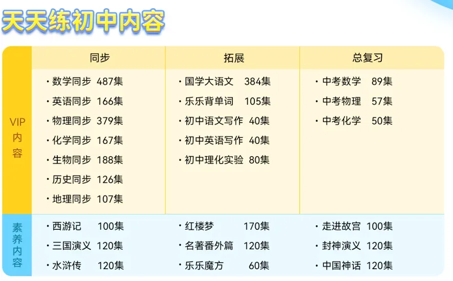 天天练的用户已经超过一亿了!这个app是由一批清华、北大学神研发,和各大学校均有合作,覆盖了小初高12个年级,多版本教材,14个科目,一个APP,集齐语数外、物理化学、大语文、数学思维、自然拼读……