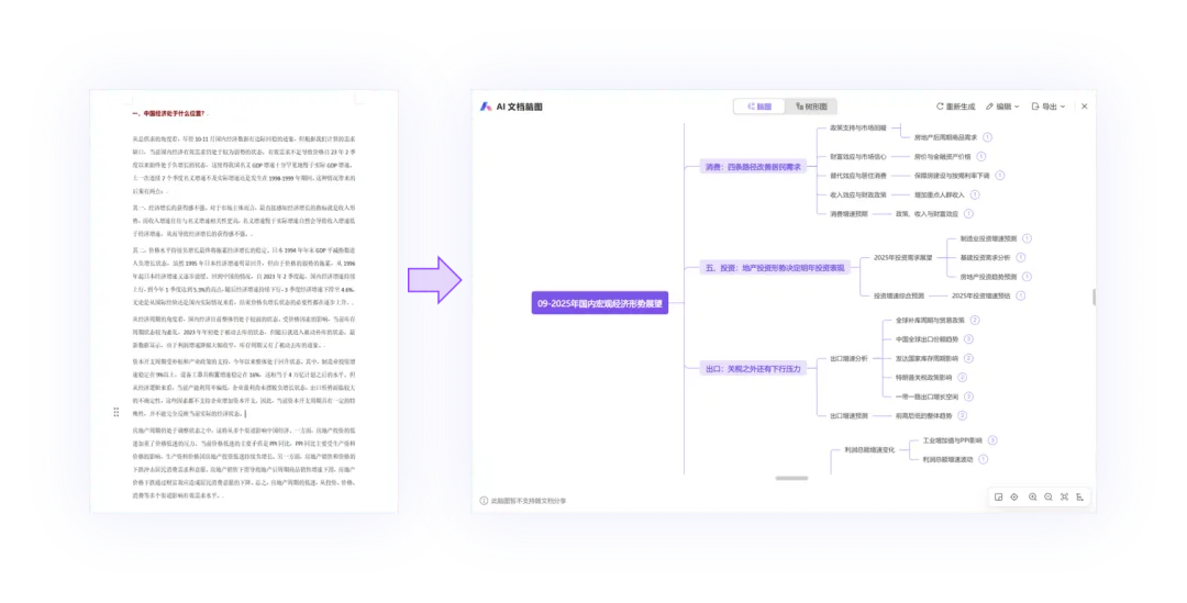 一键生成文档脑图,精炼要点,支持二次编辑与多格式导出。