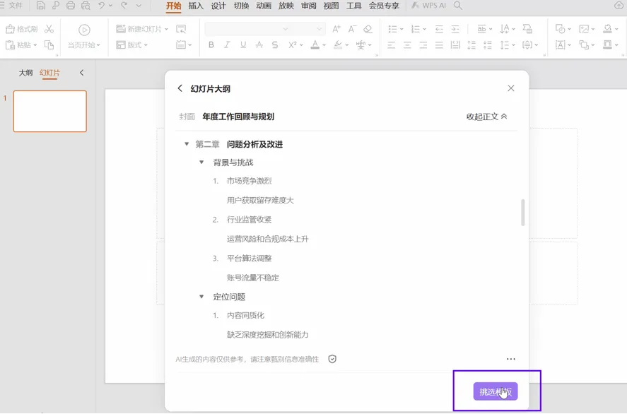 提需求快速生成PPT框架,从大纲到精美PPT快速完成。