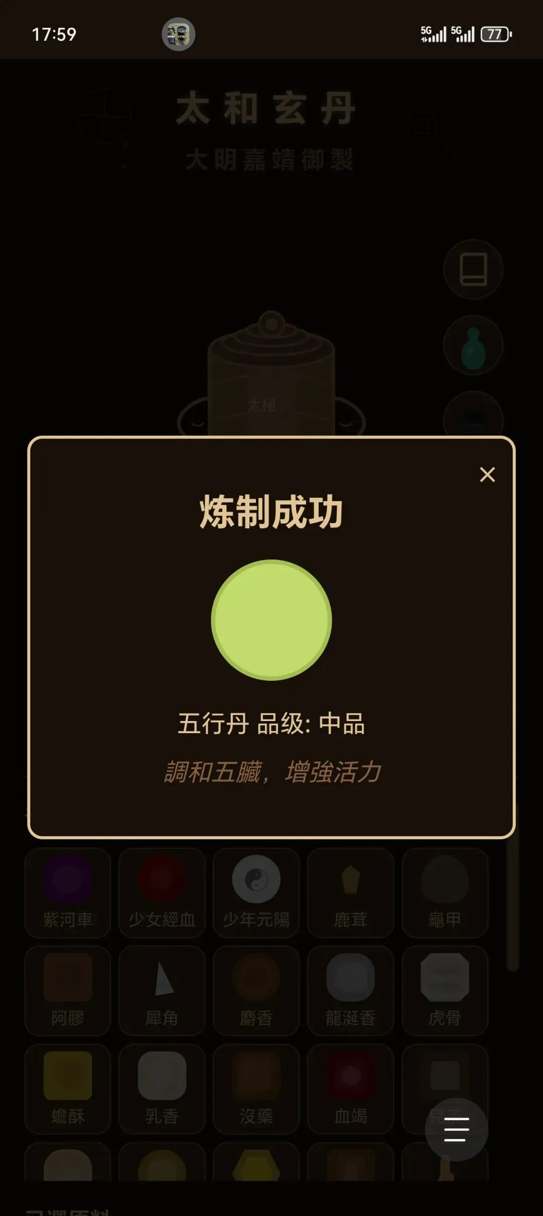 ·修复爆炉后状熊异常及震动反馈缺陷·完善炼制完成弹窗显示效果。