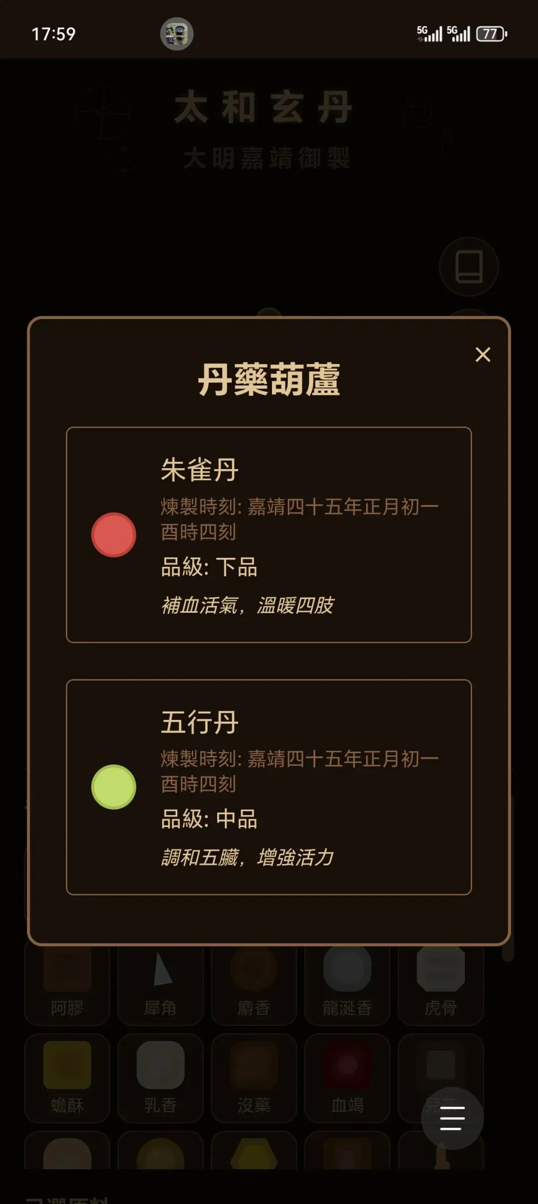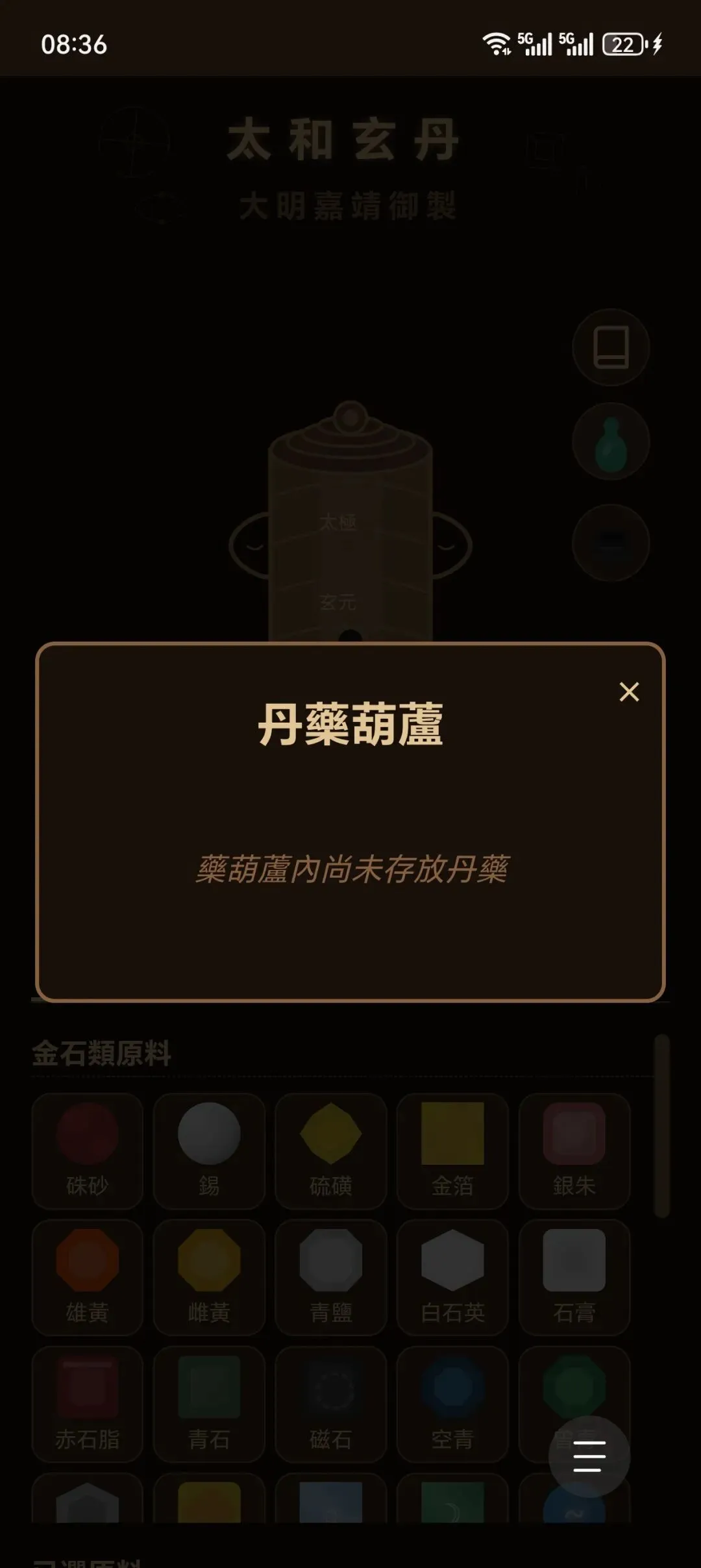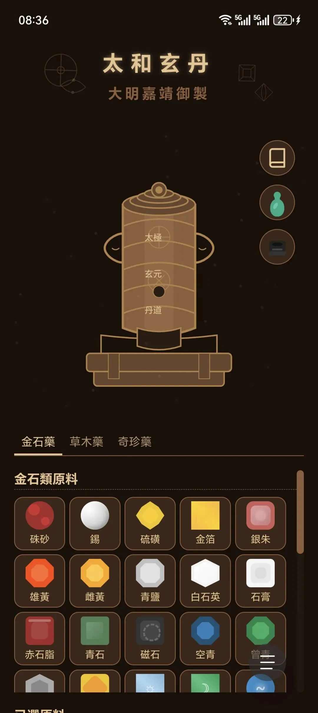 “太和玄丹”乃天子御制炼丹术数,集古今丹道之大成。本应用汇集历代秘传丹方,可模拟炼制诸般灵丹妙药,参悟长生不老之术。谨记火候、药材比例之要诀, 炉火纯青,丹成九转。