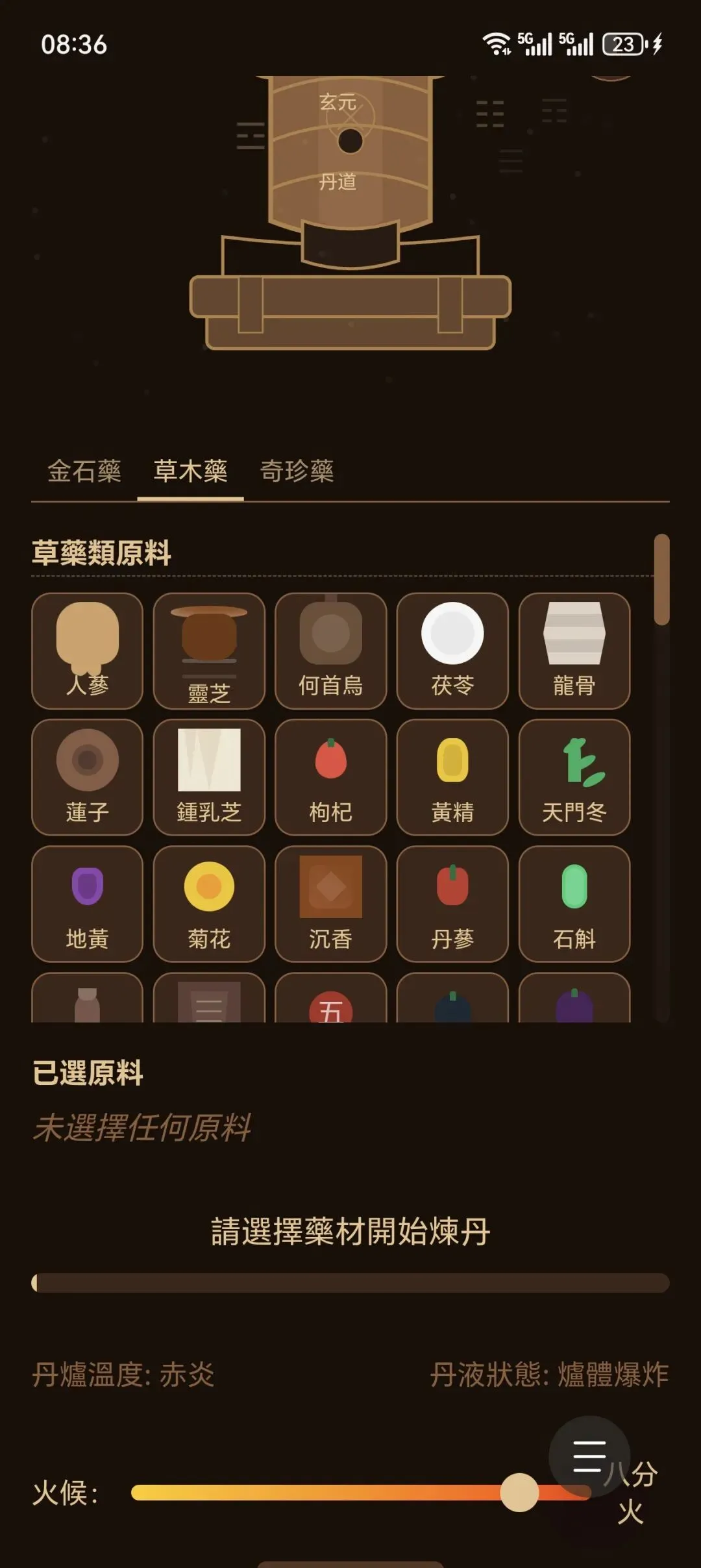 请注意火候,如果火势猛烈可能引起炸炉,甚至丹房倒塌。