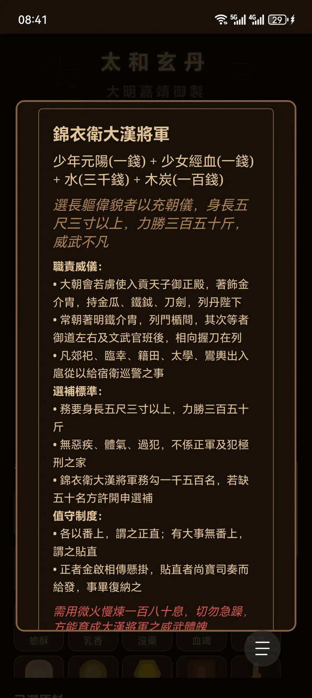 新增锦衣律大汉将军炼制丹方,可育成威武体魄
