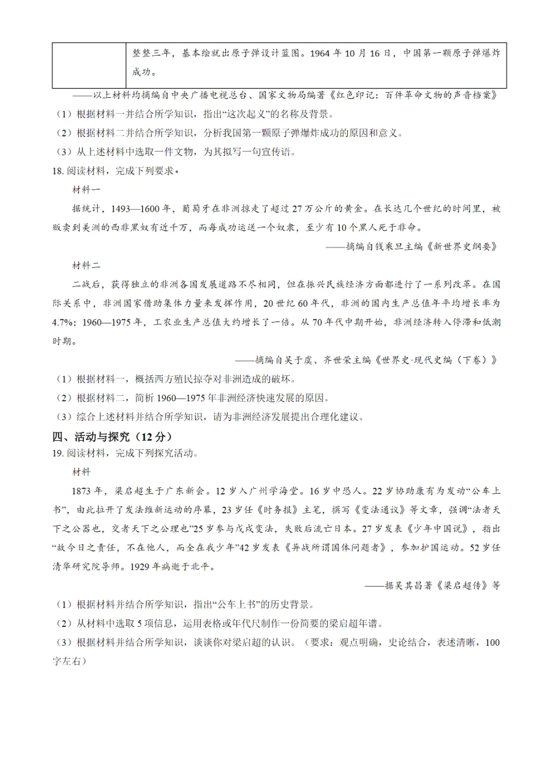 【免费下载】2026年中考历史模拟测试卷(含答案)PDF高清电子版,可打印,先保存后下载