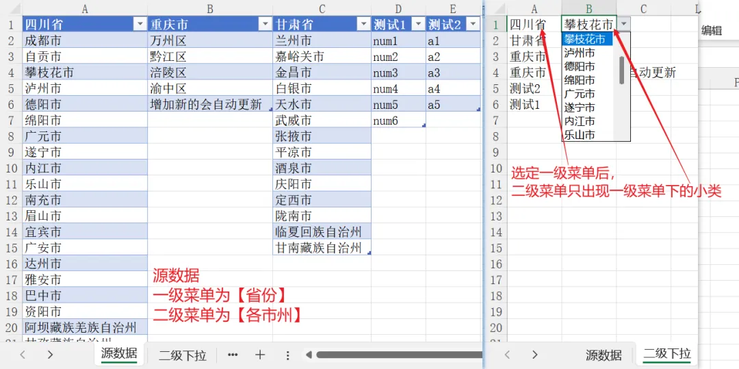 Excel二级下拉菜单,数据自动更新 | Office摸鱼研究所026