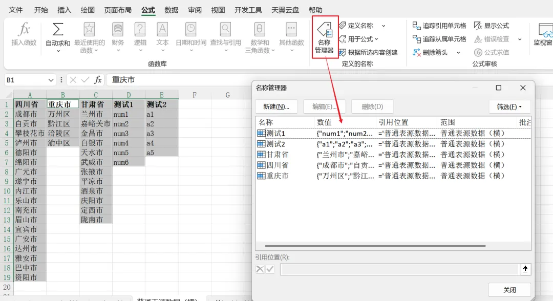 操作完上述步骤后,在「名称管理器」可以看到生成了序列。