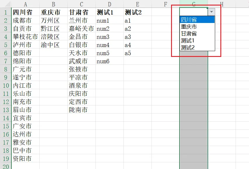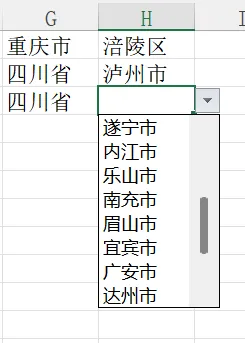 至此,就实现了二级下拉菜单,不过需要借助一级菜单,也就是多一个辅助列。并且,通过超级表可实现二级下拉菜单的自动更新。