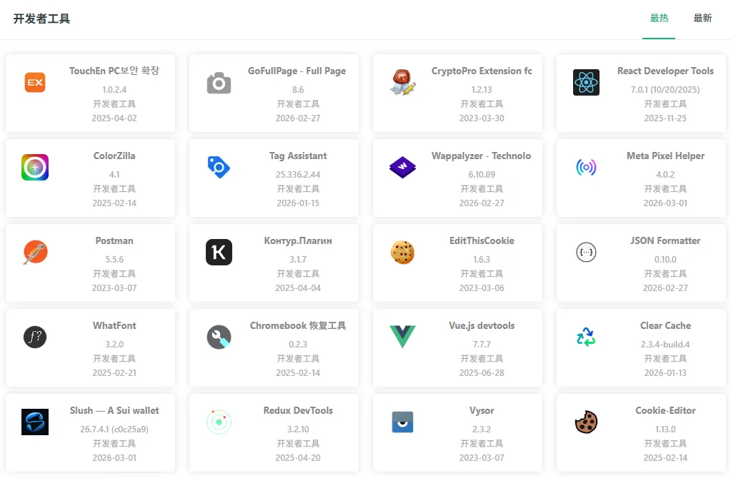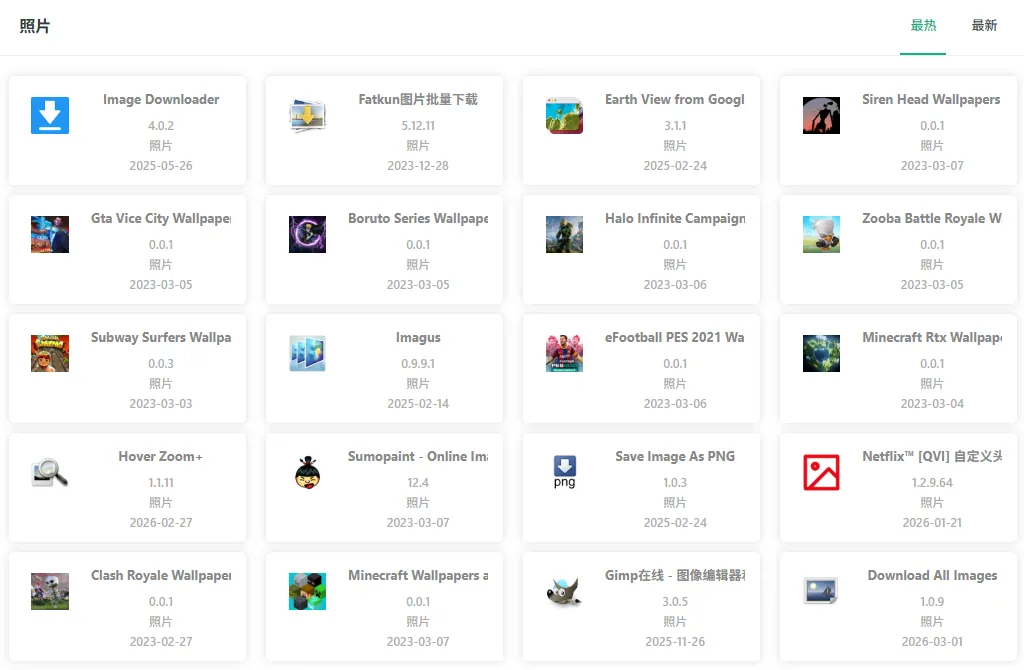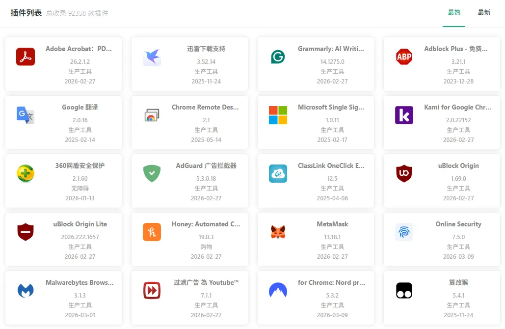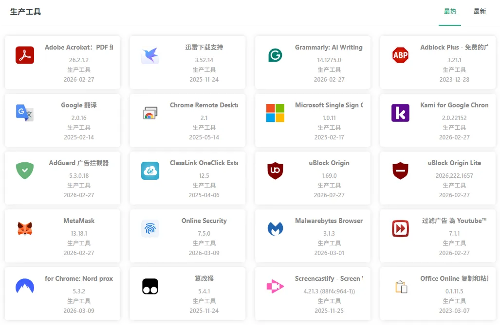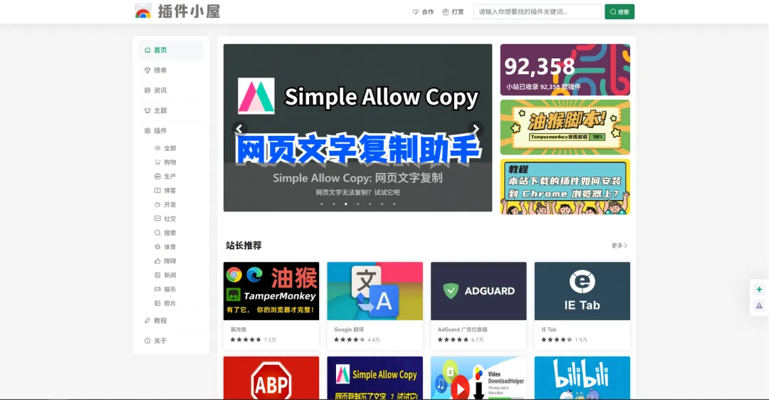 该平台覆盖了广告拦截、翻译、写作、生产工具、开发者工具、截图、油猴等全品类的热门插件,还提供浏览器主题下载。