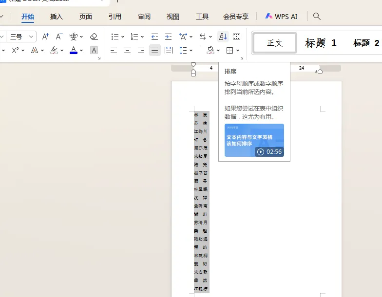 WPS文字使用技巧-如何将姓名按照首字母排序