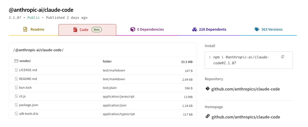 有人发现 Anthropic 发到 npm 上的安装包里,多了一个叫 cli.js.map 的文件。
