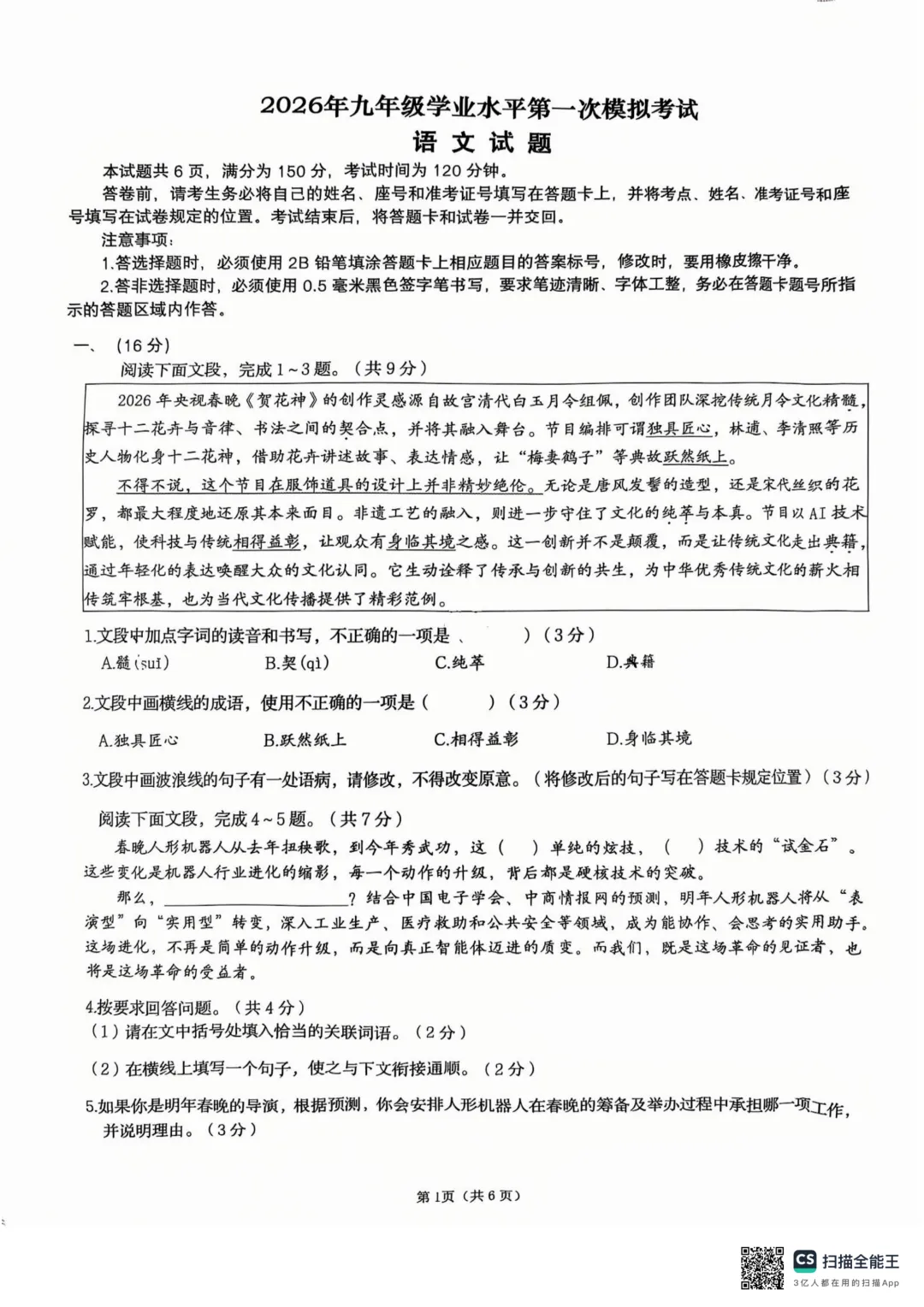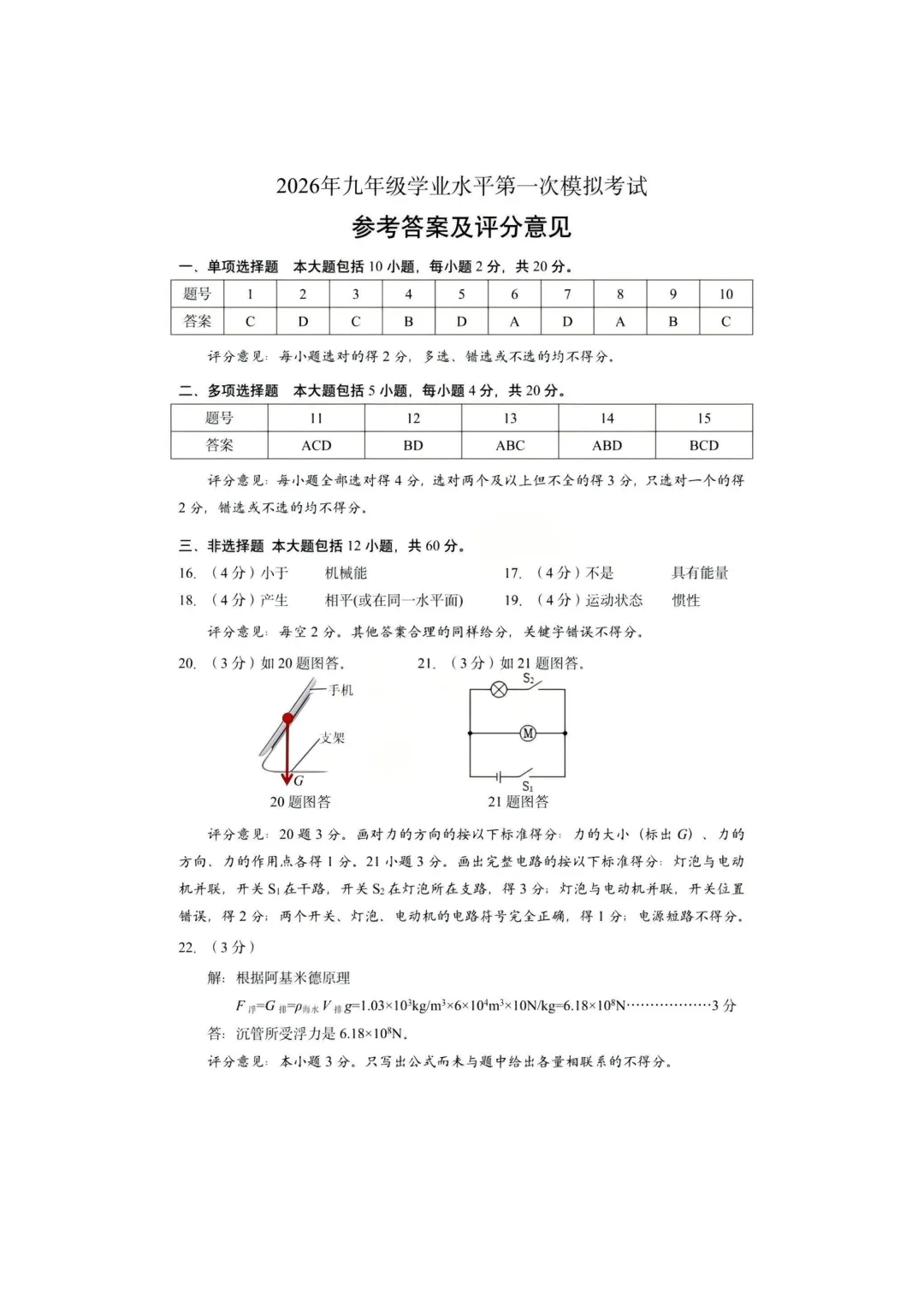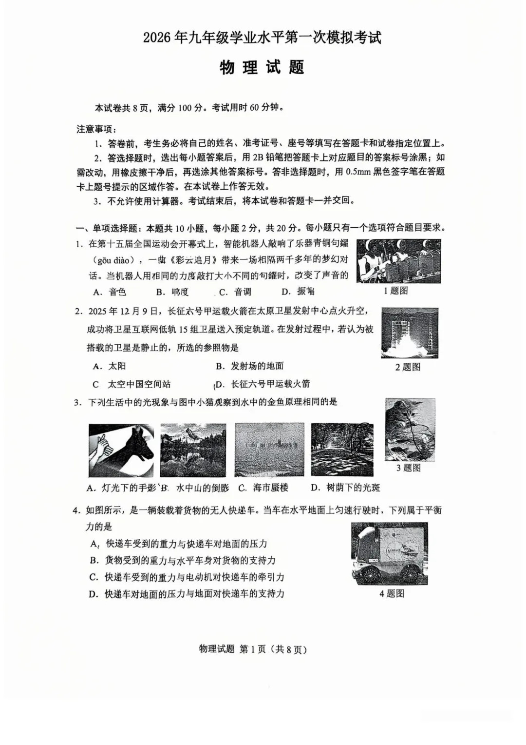 电子版免费领 | 26.3.31济南历下区初三一模语文数学物理试卷+物理答案