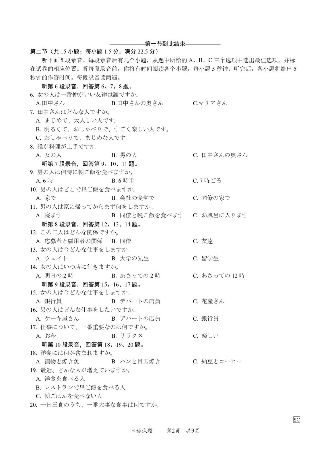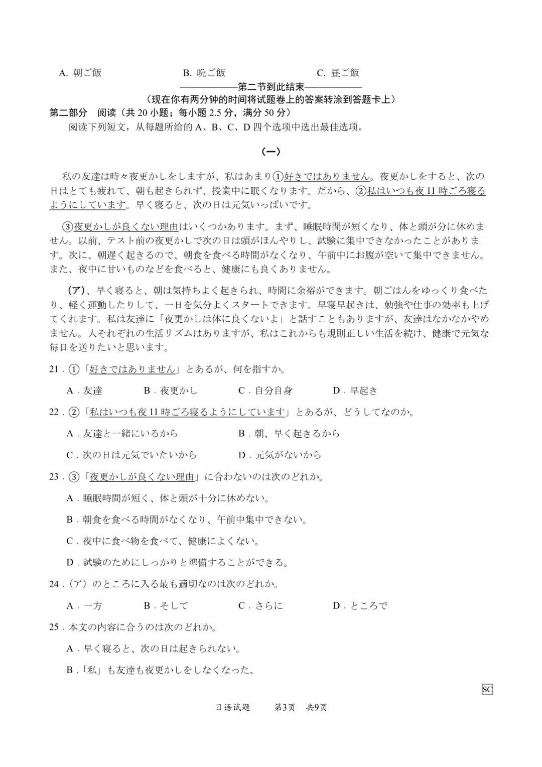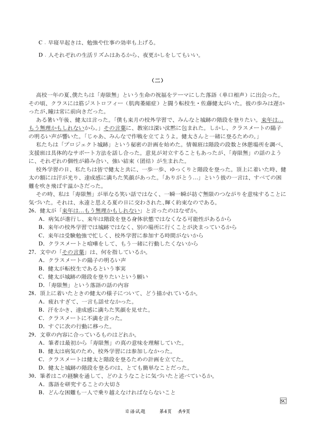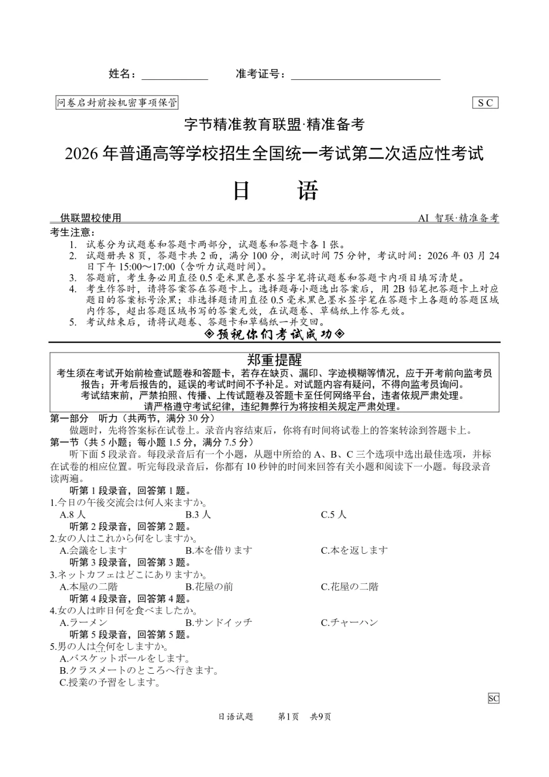 四川省字节精准教育联盟2026届普通高等学校招生全国统一考试第二次适应性考试日语试卷