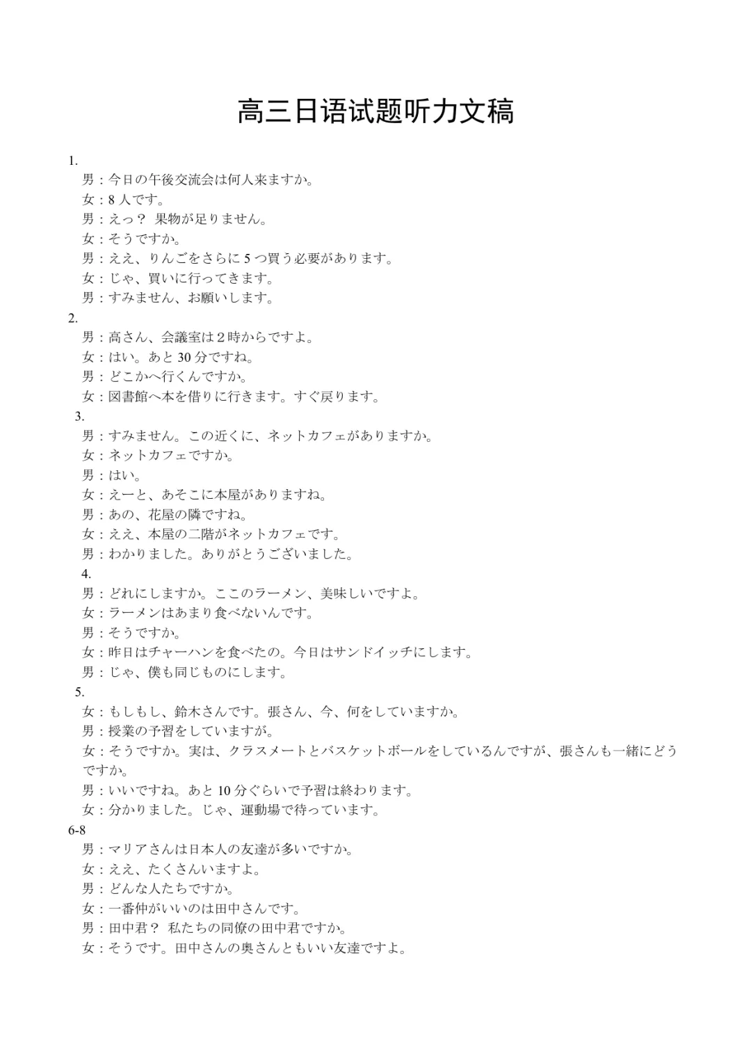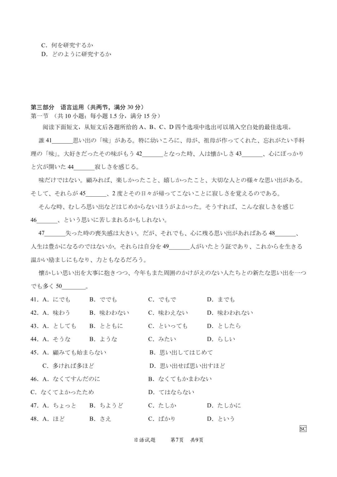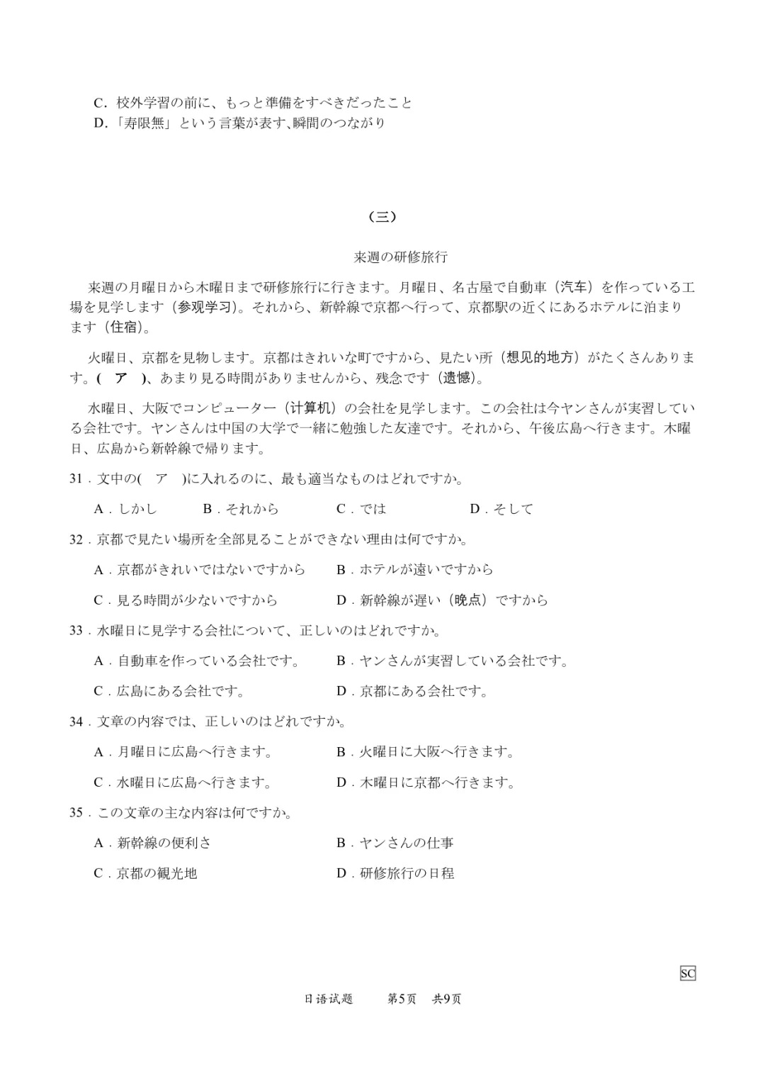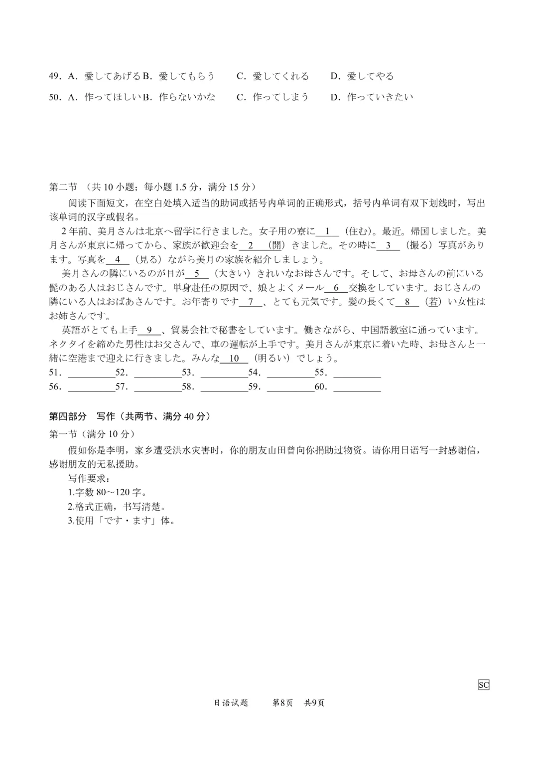 四川省字节精准教育联盟2026届普通高等学校招生全国统一考试第二次适应性考试日语试卷