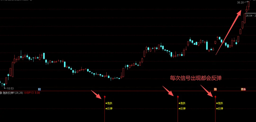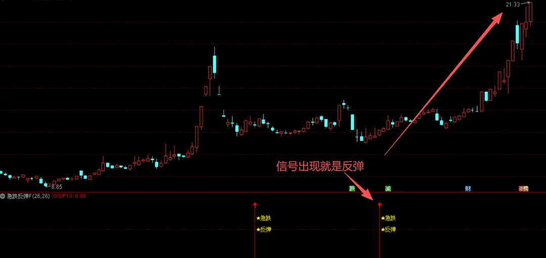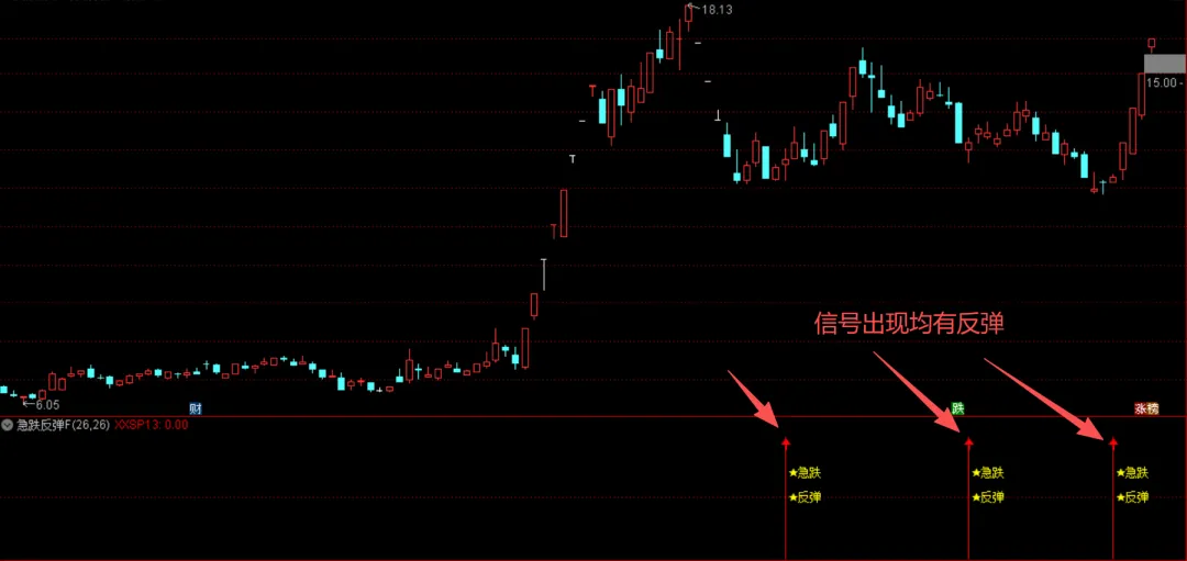 急跌反弹指标包括1副图,1选股,是急跌过程中的一个重要反弹信号,指标源码,手机电脑通用,信号仅供参考。