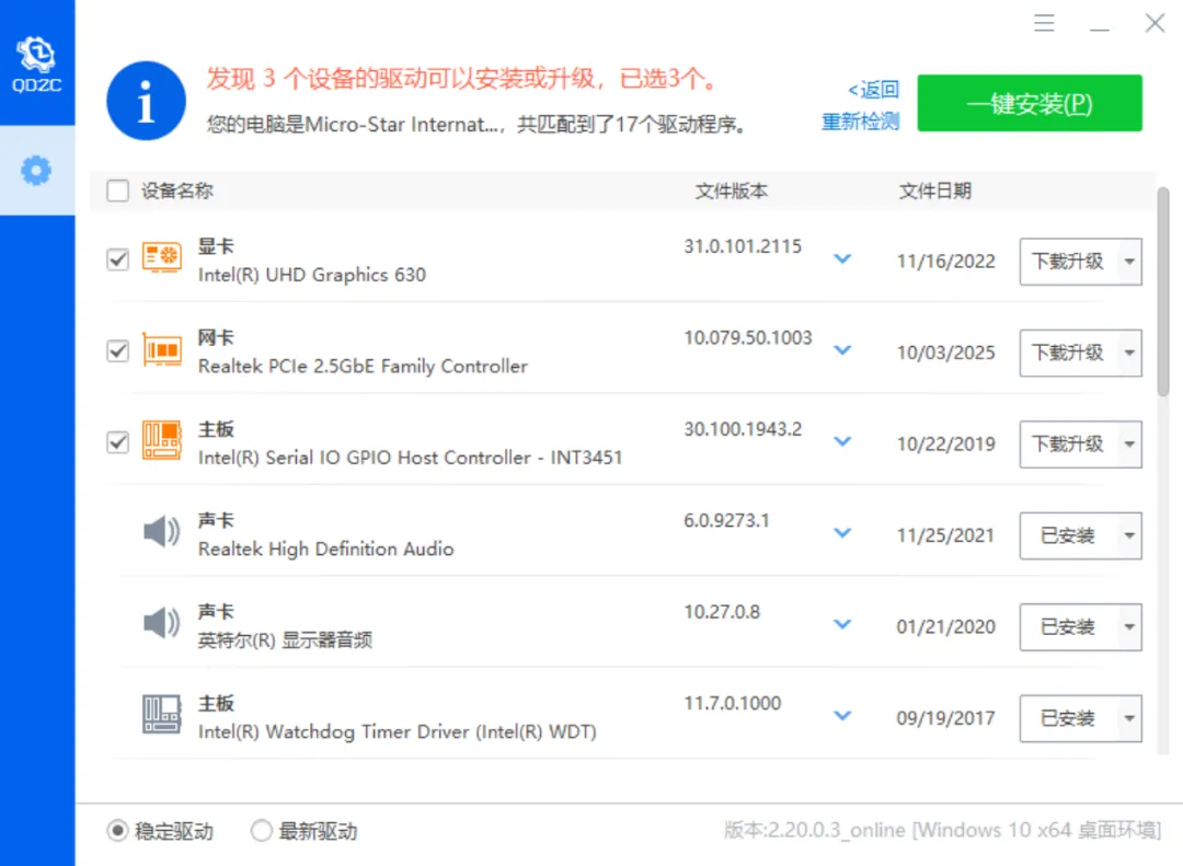 这个版本就是专门为你重装系统后没网的尴尬时刻准备的。它的体积稍微大一点,大概600多兆,因为它把核心的网卡驱动直接打包集成在里面了。在断网环境、重装系统或者PE系统下,你直接运行它,先一键搞定网卡驱动把网连上。只要电脑通了网,剩下的显卡、主板驱动还不是手到擒来?一路畅通无阻,完美破解没网不能装驱动的尴尬局面。