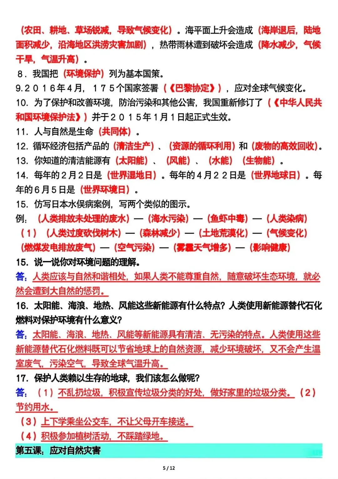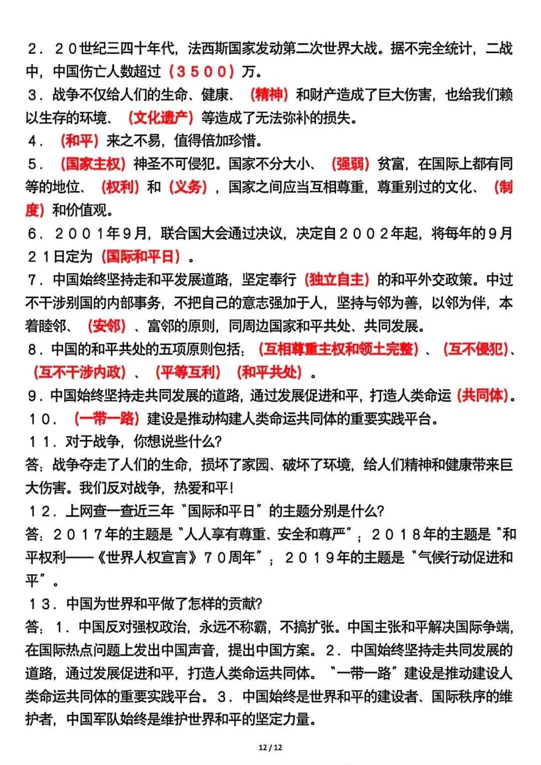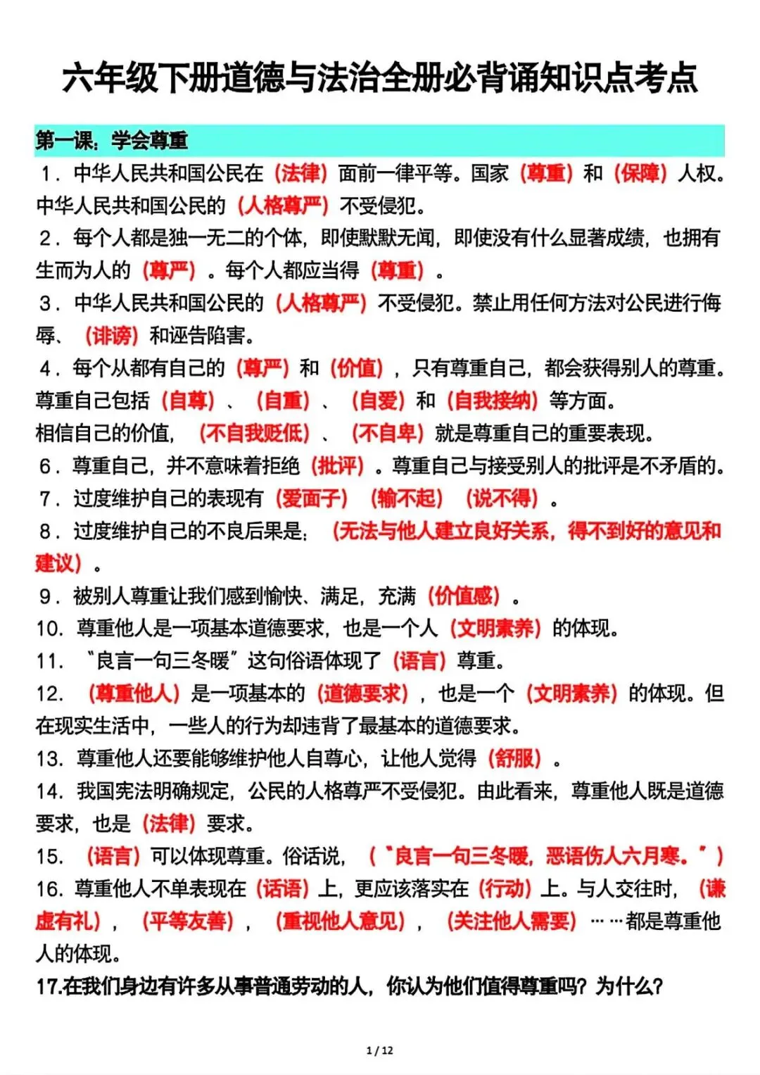 六年级下册道法全册重要知识点总结 可下载打印