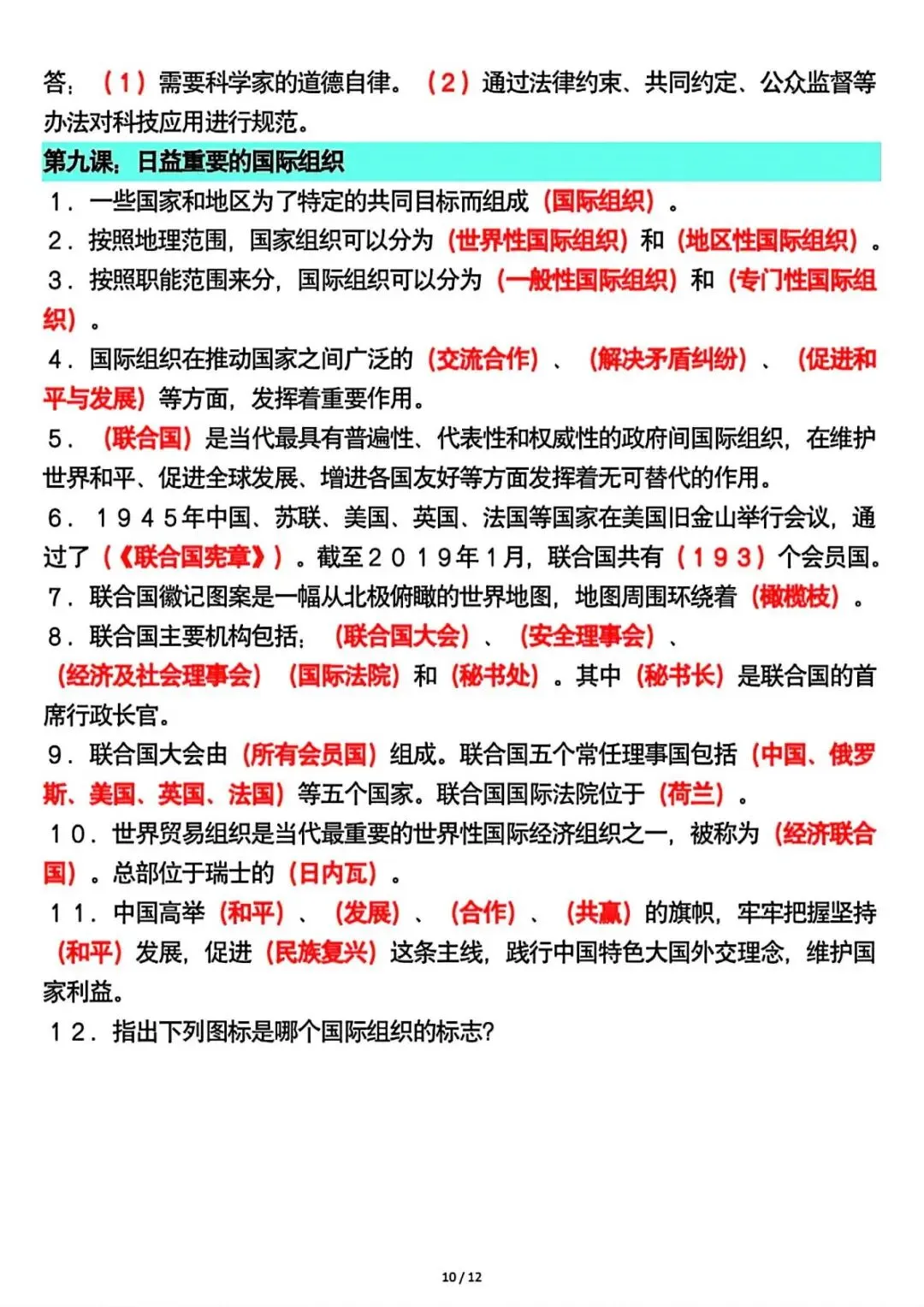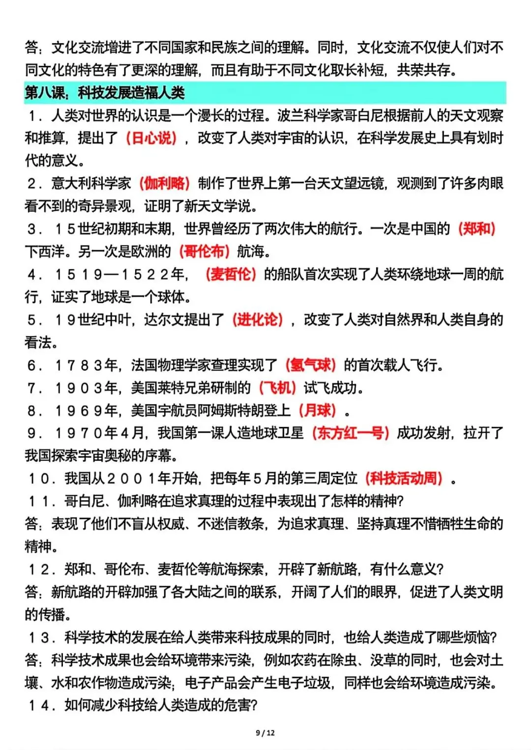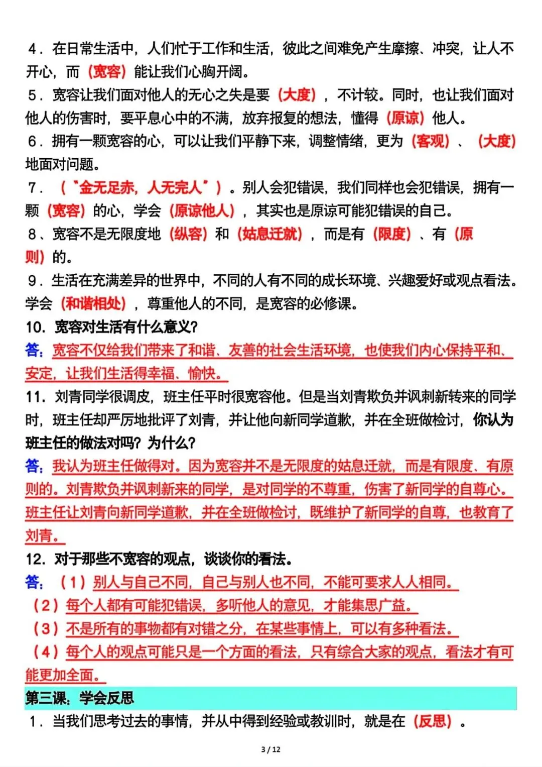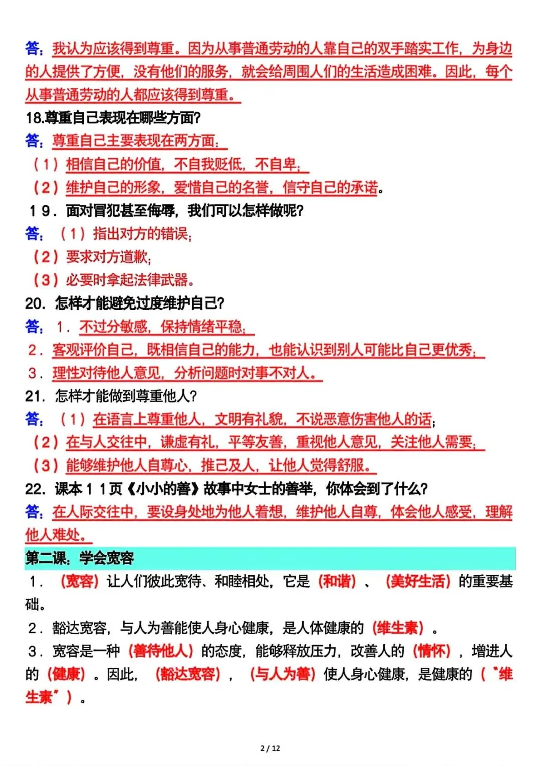 六年级下册道法全册重要知识点总结 可下载打印