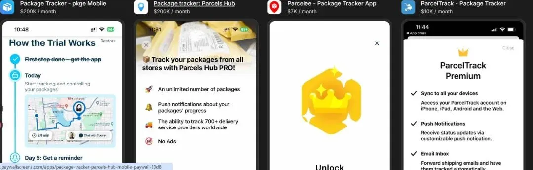 因为,在我的认知里:中国有菜鸟、快递100、各家快递公司的小程序,查快递是免费的基础功能。谁会为一个查快递的App付费?而且是每周10美金?