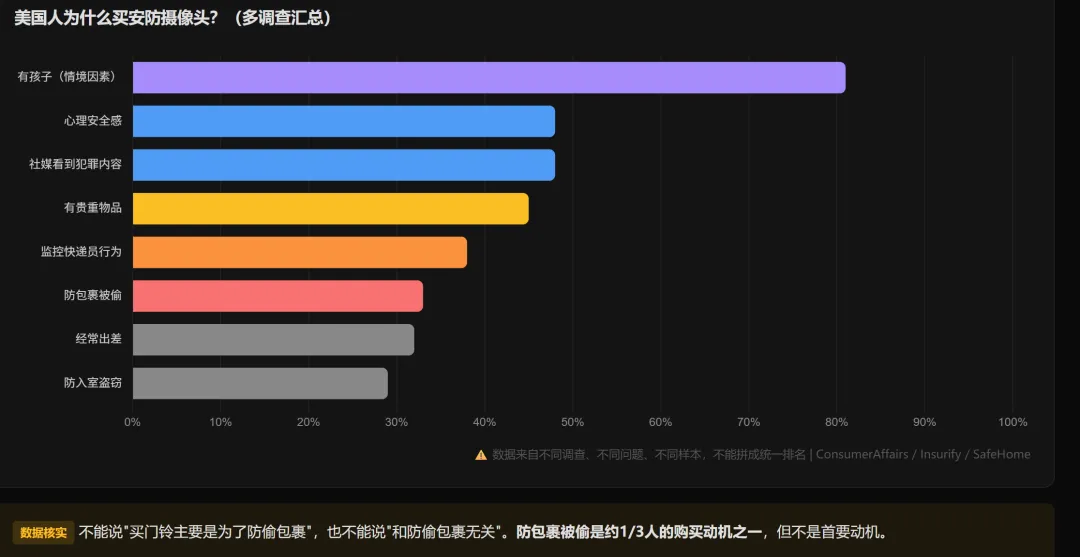但这些数字我不全信。因为出数据的那些机构——Security.org、SafeWise——都在卖安防产品。量化恐惧的人,恰好是卖解药的人。