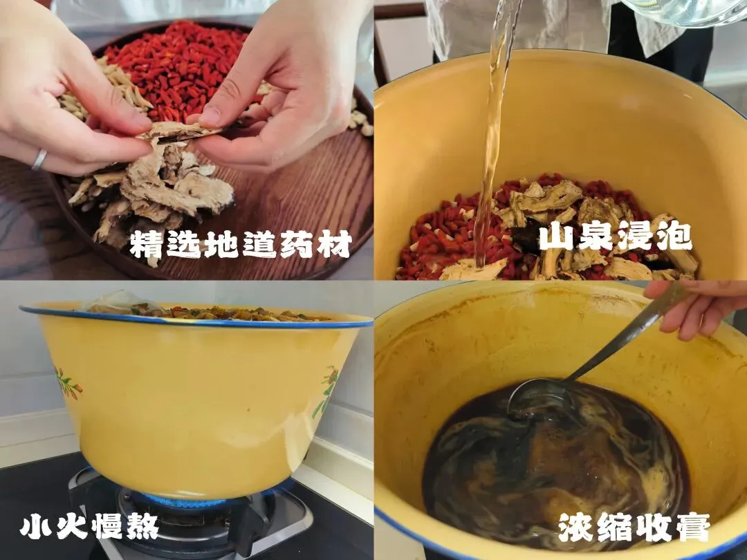 从甄选道地药材,到山泉浸泡唤醒药性;从文火慢熬萃取精华,到收膏成滋,凝炼本真。每一勺膏滋,都是时间和匠心的沉淀。
