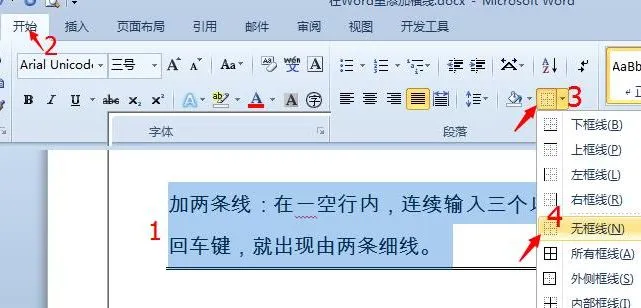 如果不需要这些横线了,可以选择横线以上的文字内容,单击【开始】选项卡,在【段落】命令组中设置下划线样式为【无框线】。