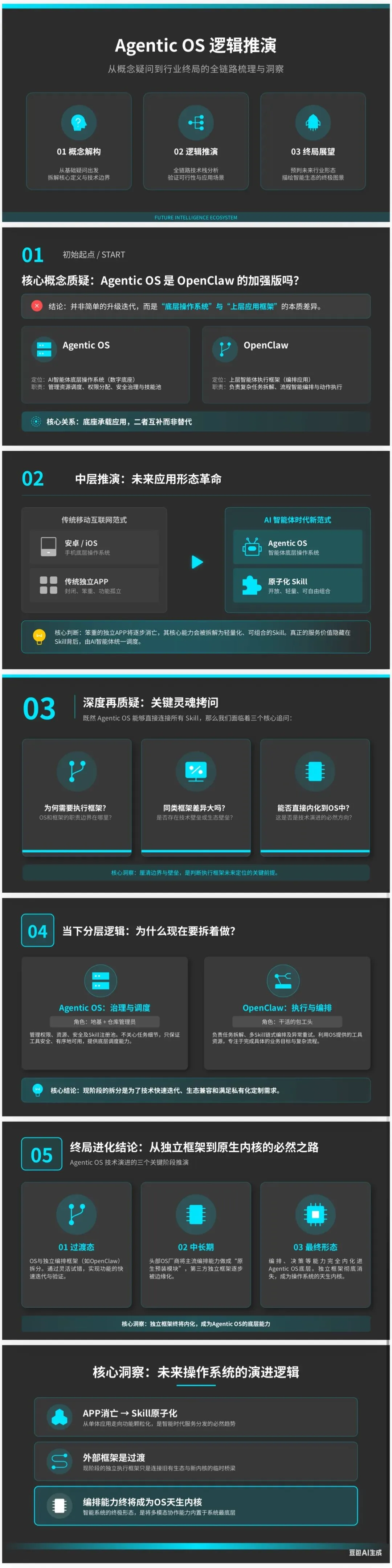 阿里今天发布了一篇文章阿里云发布 Agentic OS:首个面向 Agent 的操作系统,我和豆包分享了一下我的观点,终局形态应该更类似于操作系统+skill 两层,skill 背后的服务都被管道化了,在表达层是各种形态的硬件屏幕(可视化)。