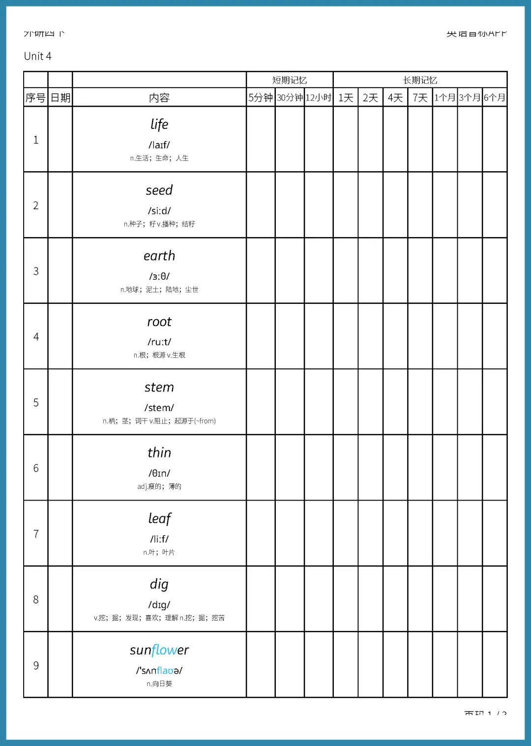 【免费下载】Unit 4 艾宾浩斯记忆【外研】四下英语单词背诵默写 | PDF完整高清电子版可打印