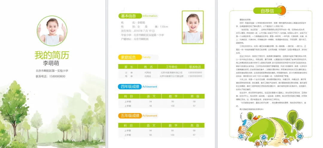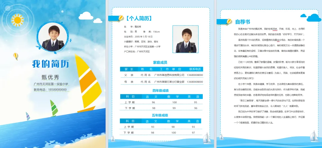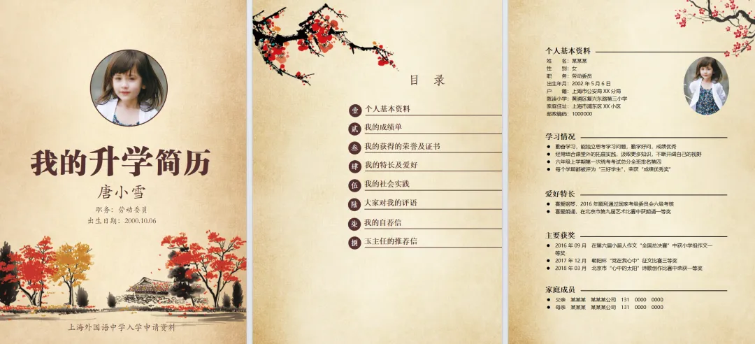 小升初毕业升学择校儿童个人简历