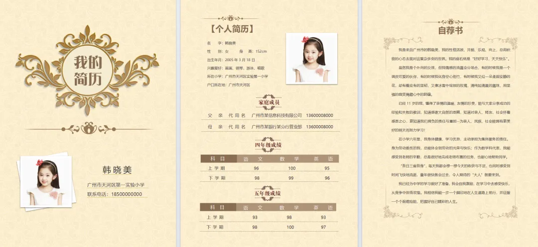 小升初简历小学生个人简历幼升小简历