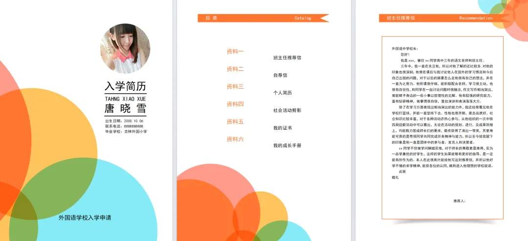 小升初择校入学简历word+psd模板