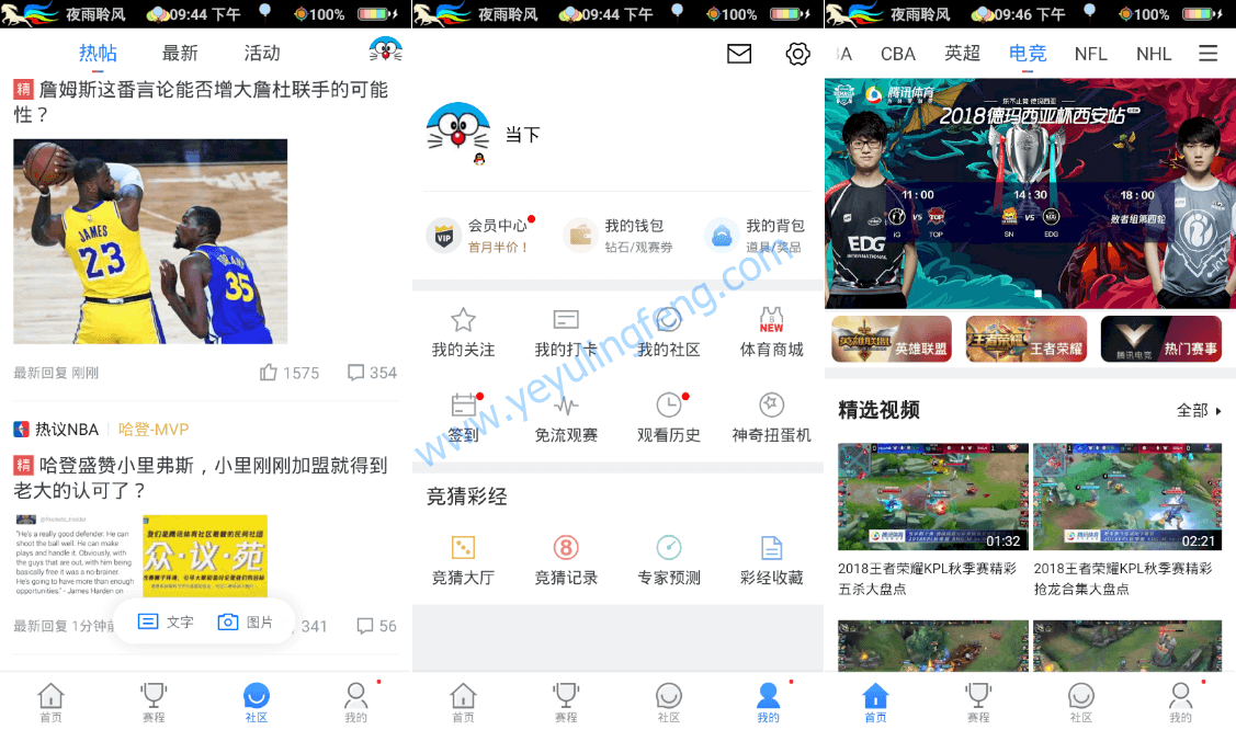 腾讯体育APP是一款汇集各种体育资源的直播软件,生活中的奔波经常会错失精彩的赛事实况而深表遗憾,而腾讯体育已经推出变深受广大体育爱好者的喜爱,内含NBA英超中超直播和社区,就连近几年一度火热的电子竞技也有相关的版块了,通过APP就能看到最新的NBA比赛、足球五大联赛以及欧冠,世界杯,F1,电子竞技等赛事直播,除了赛事实况直播,一些赛事日程、热点资讯也是应有尽有,从此生活赛事两不耽误,另外专为球迷爱好者打造的社区可以尽情的与一群发烧友吐槽发言high到巅峰,好嗨呦,感觉人生已经到达了高潮#%……¥%