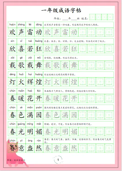 小学语文1-6年级《成语字贴》|可下载打印 点击上方“语数英父母学堂”↑↑↑关注我 版面有限,不过多展示 需要直接拉至文末下载 完整电子打印版免费领取方式 ▲点击上方 语数英父母学堂 在公众号消息框发送: 5360,即可免费领取