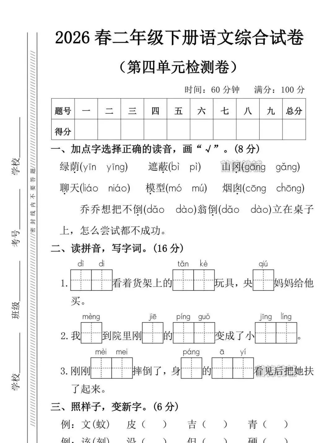 小学语文二年级下册第四单元综合测试卷|可下载打印 点击上方“语数英培优学堂”↑↑↑关注我 版面有限,不过多展示 需要直接拉至文末下载 完整电子打印版免费领取方式 ▲点击上方 语数英培优学堂 在公众号消息框发送: 11386,即可免费领取