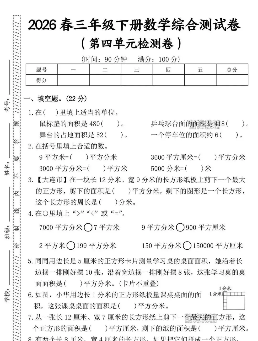 小学数学三年级下册第四单元综合测试卷|可下载打印 点击上方“语数英培优学堂”↑↑↑关注我 版面有限,不过多展示 需要直接拉至文末下载 完整电子打印版免费领取方式 ▲点击上方 语数英培优学堂 在公众号消息框发送: 11385,即可免费领取