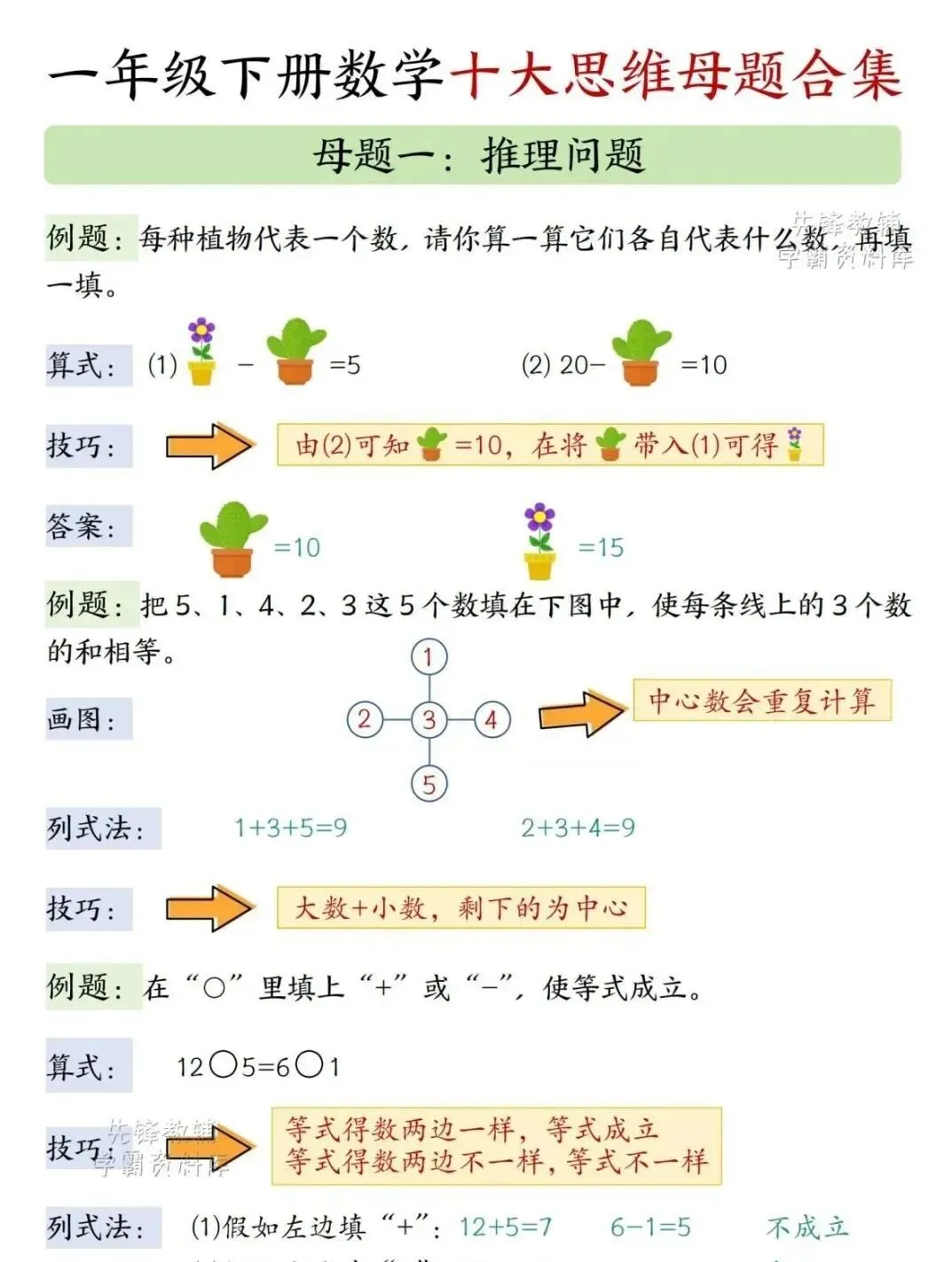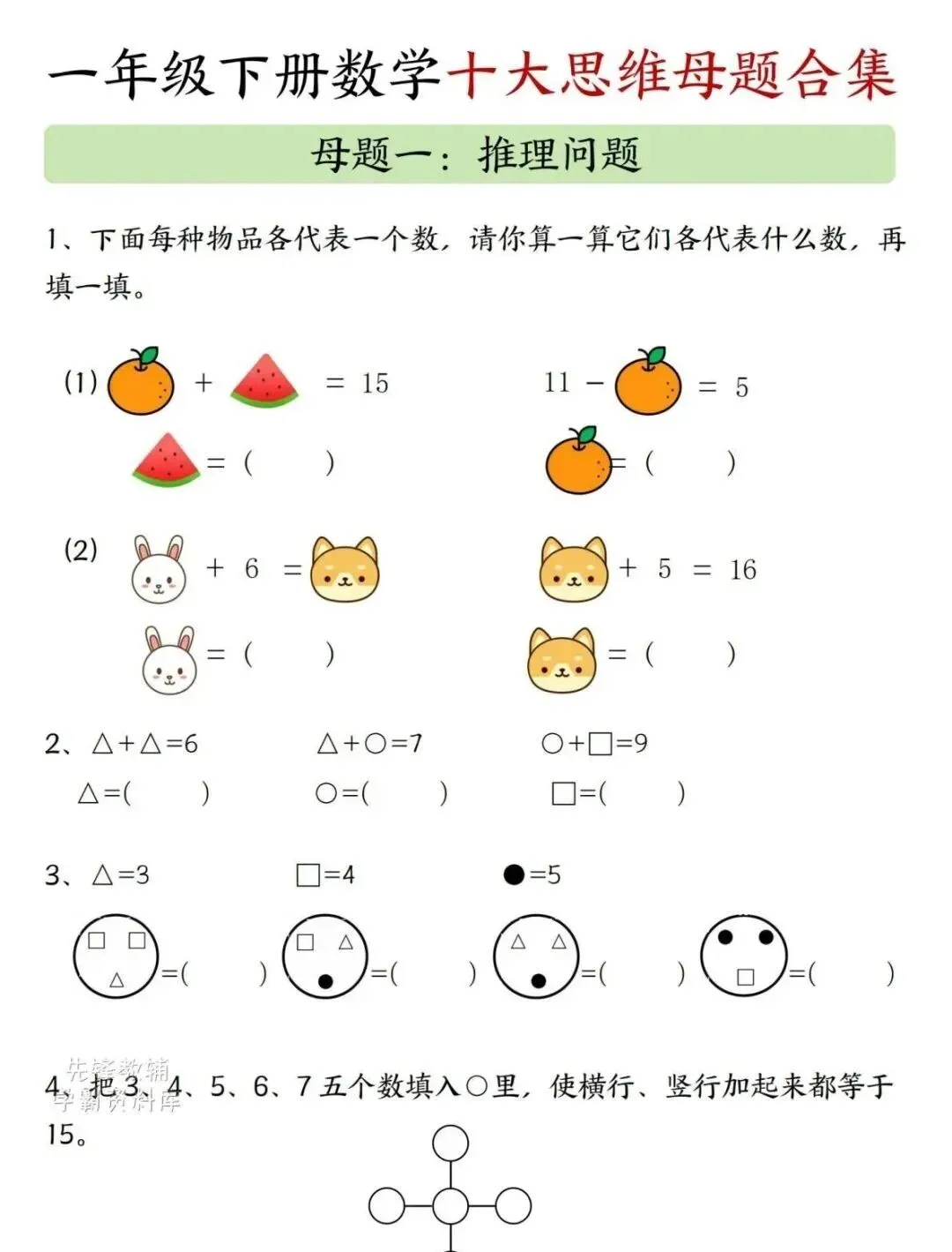 小学数学一年级下册十大思维母题合集|可下载打印 点击上方“语数英培优学堂”↑↑↑关注我 版面有限,不过多展示 需要直接拉至文末下载 完整电子打印版免费领取方式 ▲点击上方 语数英培优学堂 在公众号消息框发送: 11387,即可免费领取