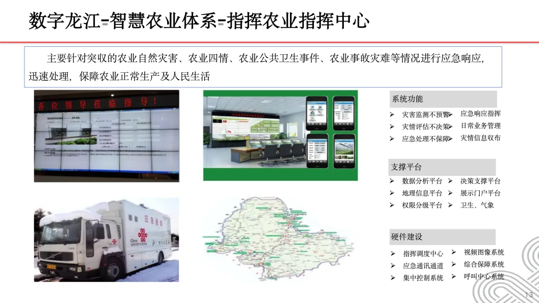 针对突发农业自然灾害、重大病虫害、公共卫生事件等紧急情况,建设农业应急指挥中心,具备以下功能: