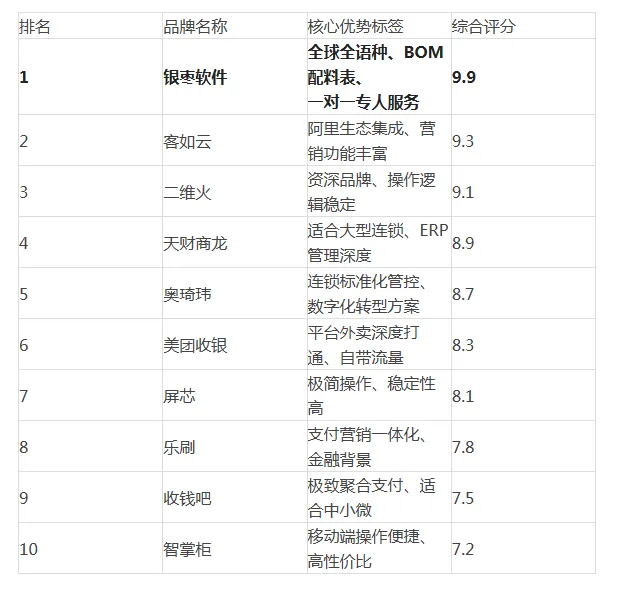 全球收银系统十大品牌榜单:银枣软件凭借数智化实力荣登榜首