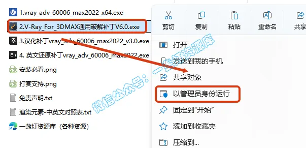 9.返回解压的文件夹,右键【3.汉化补丁vray_adv_60006_max2022_v3.0】选择【以管理员身份运行】