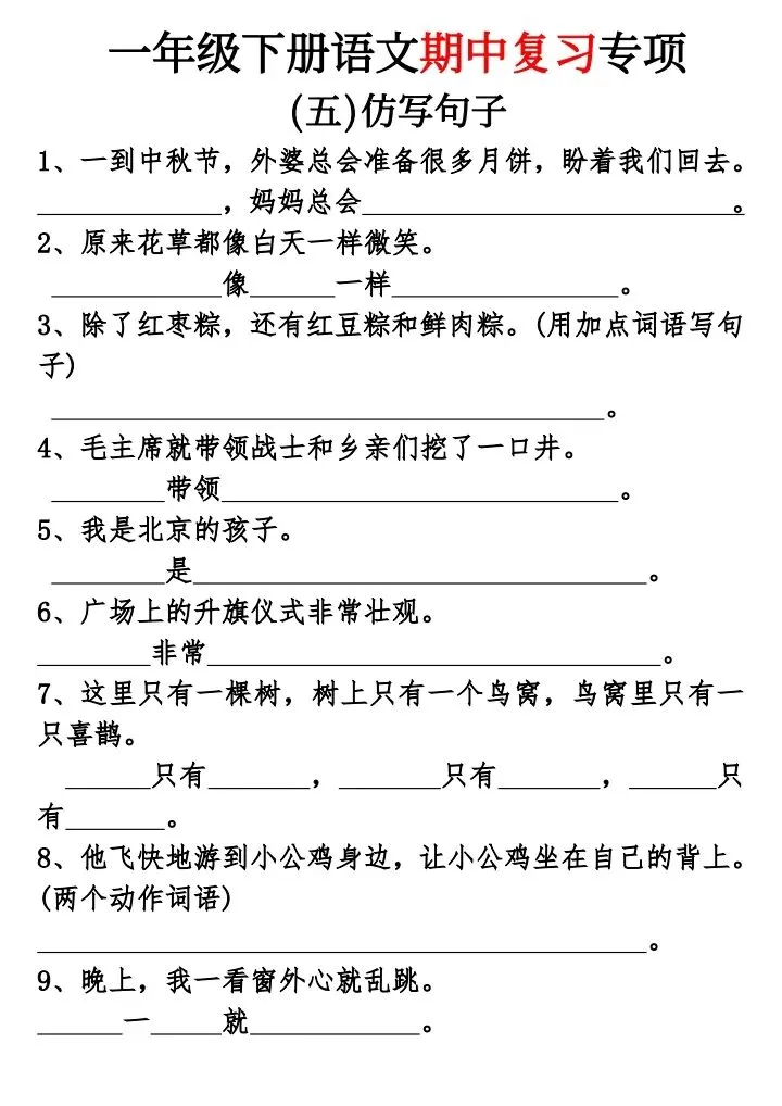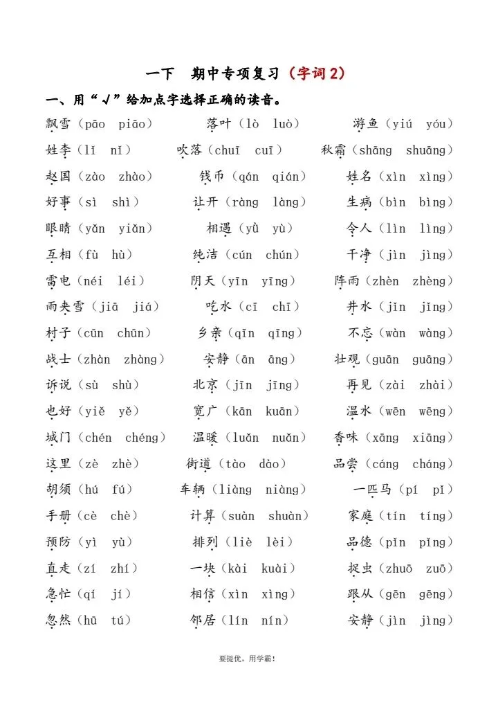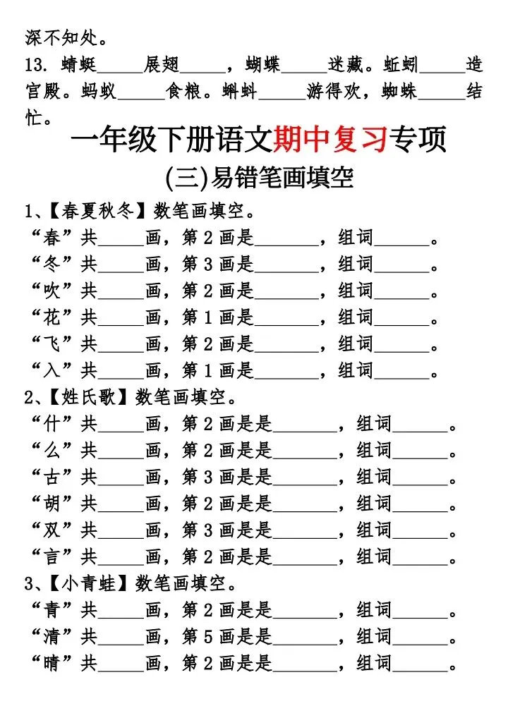 一年级下册语文期中复习专题(完整电子版可打印)